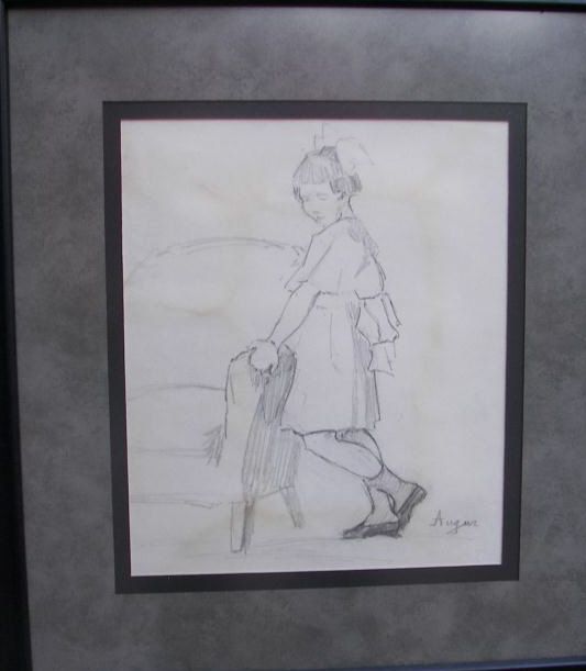 , (2205) Ruth Monroe Augur, Pencil Drawing, Young Girl, 10" x 8" Sight, Signed Lower Right