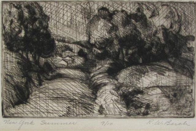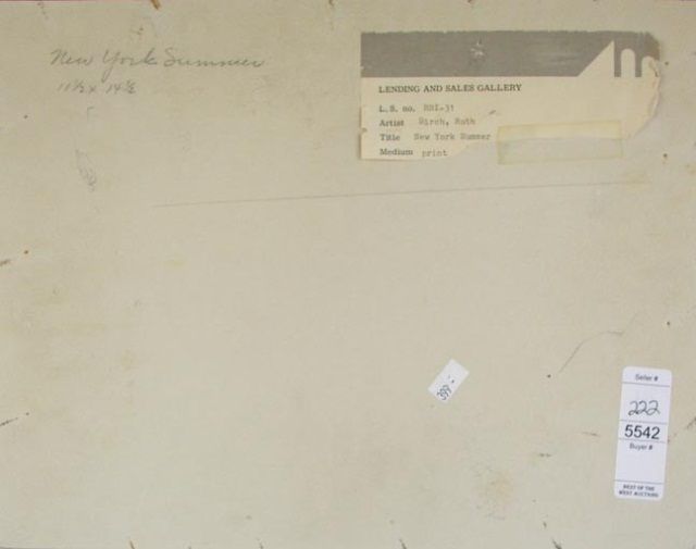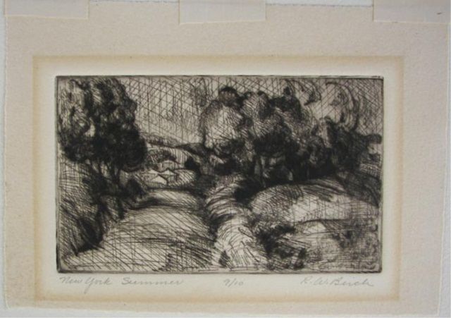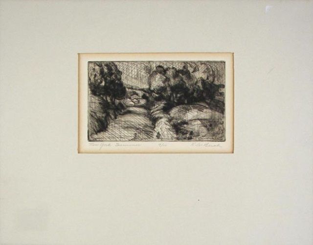 Ruth W. Birch, Etching , (5542) Ruth W. Birch, Etching, "New York Summer", #9/10, Image Size 3 1/2" x 6 1/4", Pencil Signed,
