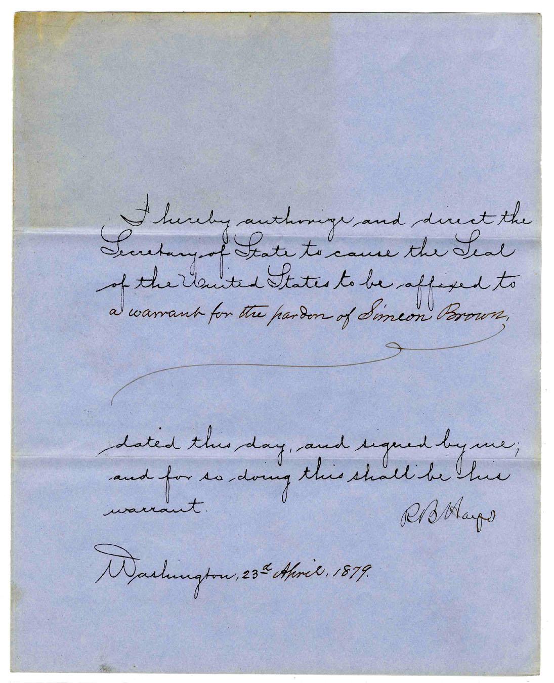 President Rutherford B. Hayes Document Signed -- "R.B. Hayes" -- 23 April 1879 -- 8" x 10" -- Slight Toning