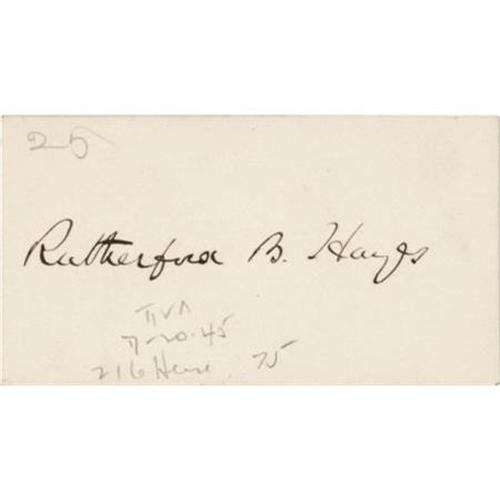 <B>Rutherford B. Hayes Signature</B></I> on the verso of his personal calling card, 3.25" x 1.75". A bold ink signature of our 19th president, very fine.<I>From the collection of Henry E. Luhrs.</B></I><BR><BR><b>Shipping:</b> Flat Material, Small (<a target="_blank" href="http://www.heritageauctions.com/common/shipping.php">view shipping information</a>)
