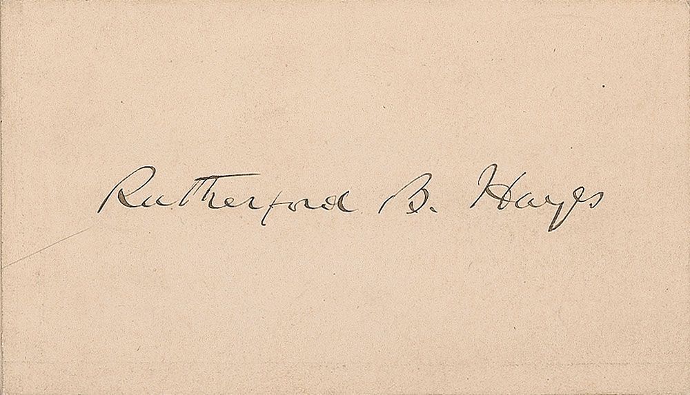 Choice ink signature, “Rutherford B. Hayes,” on an off-white 3.25 x 2 card. In fine condition.