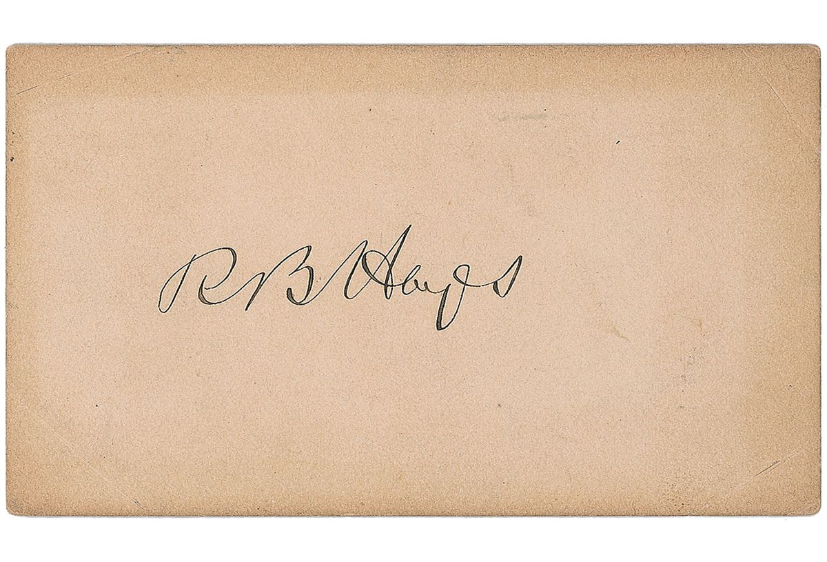 Crisp ink signature, “R. B. Hayes,” on an off-white 3.75 x 2.25 card. In fine condition, with toning to edges.