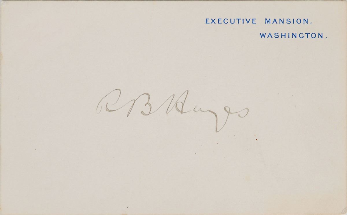 Executive Mansion card signed in black ink, “R. B. Hayes.” In fine condition.