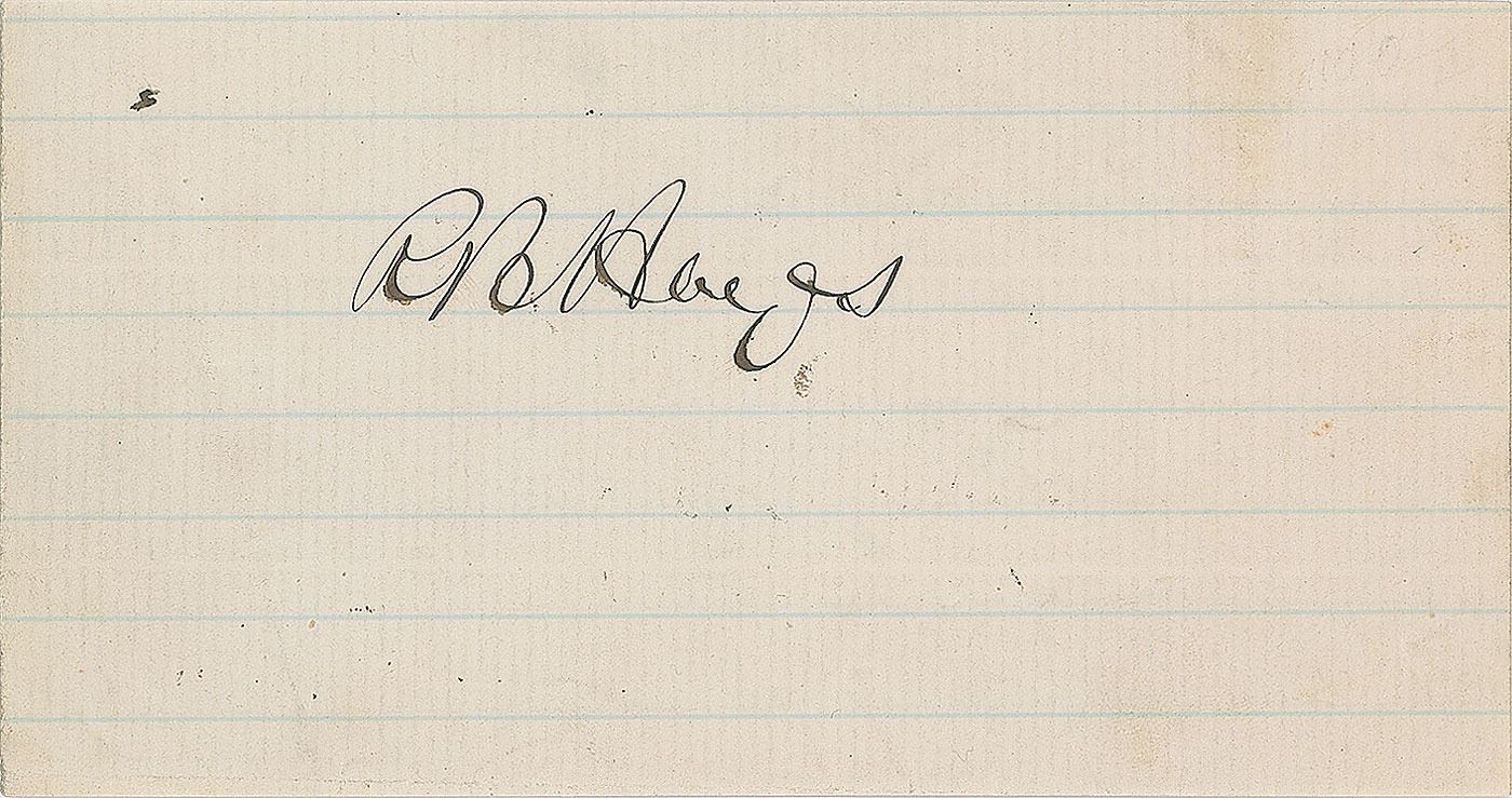 Neat ink signature, "R. B. Hayes,” on an off-white 5 x 2.5 lightly-lined sheet. In fine condition.
