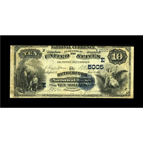 <B>Rutherford, NJ</B></I> - $10 1882 Date Back Fr. 542 <B>The Rutherford NB</B></I> Ch. # (E)5005<BR>This is one of only two Date Backs reported from this well collected Bergen County community. <B>Fine+,</B></I> with a trimmed in top margin.<BR><BR><b>Shipping:</b> Coin/Currency (<a target="_blank" href="http://www.heritageauctions.com/common/shipping.php">view shipping information</a>)