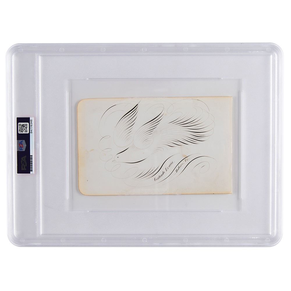 Desirable ink signatures as president, "R. B. Hayes, Washington, D.C., 21 Feb. 1878," and as first lady, "Lucy W. Hayes,& rdquo; on an off-white 7.25 x 4.5 album page. In fine condition, with show-through from an ornate bird drawing on the reverse. Encapsulated in a PSA/DNA authentication holder.