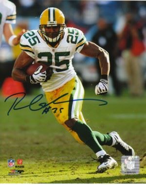 Ryan Grant had a successful first season with the Packers, rushing for almost 1,000 yards, including five 100+ yard games, in 10 starts. He set franchise records with 201 rushing yards and 3 touchdowns in the Packers' divisional playoff game win against the Seattle Seahawks, a performance for which he was heavily praised, as they went on to reach the NFC Championship Game. Ryan Grant has hand autographed this Green Bay Packers 8x10 Photo. LOJO Hologram and Certificate of Authenticity from Athlon Sports.