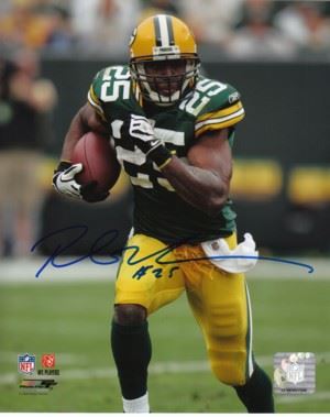 Ryan Grant had a successful first season with the Packers, rushing for almost 1,000 yards, including five 100+ yard games, in 10 starts. He set franchise records with 201 rushing yards and 3 touchdowns in the Packers' divisional playoff game win against the Seattle Seahawks, a performance for which he was heavily praised, as they went on to reach the NFC Championship Game. Ryan Grant has hand autographed this Green Bay Packers 8x10 Photo. LOJO Hologram and Certificate of Authenticity from Athlon Sports.
