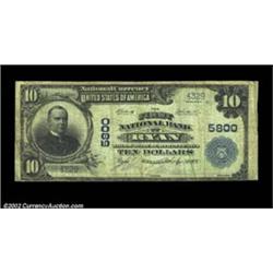 Ryan, OK - $10 1902 Plain Back Fr. 633 The First NB Ch. # 5800Large notes only from this bank, the sole issuer here, with just six pieces (along with one Territorial example) comprising the entire Kelly census. Fine, tight at the bottom. Important notice: We expect to be auctioning lots at the rate of 200-250 per hour. Sometimes eBay Premier live bid software cannot keep up with that pace, so we strongly recommend that you place a realistic proxy bid now as insurance to avoid disappointment. Also please note that all Heritage/CAA lots purchased through eBay Premier carry a 20% Buyer's Premium. Please make sure you read the Terms and Conditions.