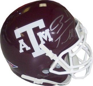 Ryan Tannehill is considered one of the top quarterback prospects for the 2012 NFL Draft. He played at wide receiver during his freshman and sophomore seasons. He continued to play receiver midway through his junior season, but switched to playing quarterback for the remainder of the season. Ryan Tannehill has hand signed this Texas A&M Aggies Authentic Schutt Mini Helmet. Private signing 2/11/2012 in Hurst, Texas. Certificate of Authenticity from Athlon Sports.