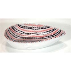 Rye Pottery avocado dish, hand painted with black and pink stripes, inscribed Rye to base, 16cm long