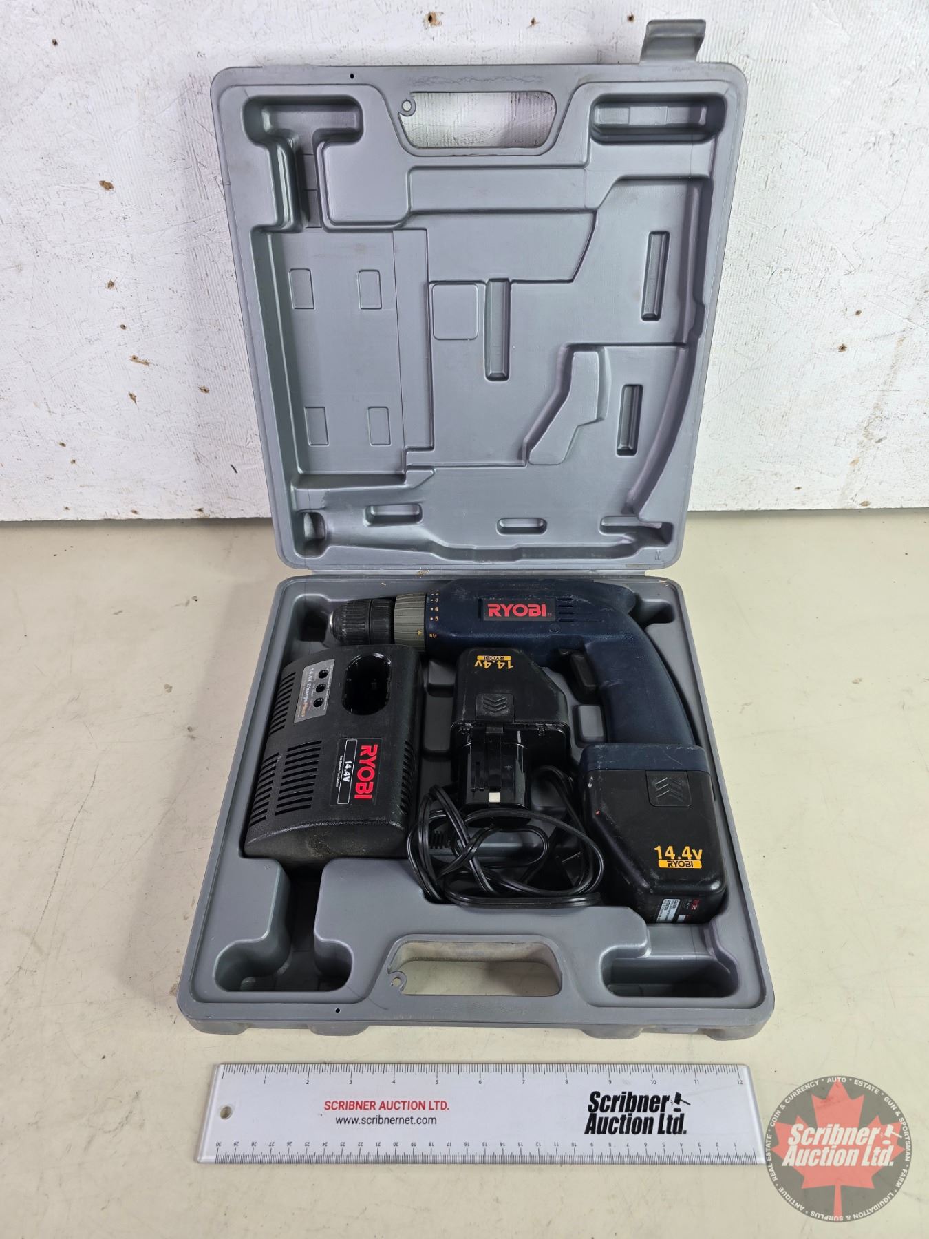 Ryobi 14.4V Cordless Drill : Model CD145 c/w Batteries (2), Charger & Carry Case