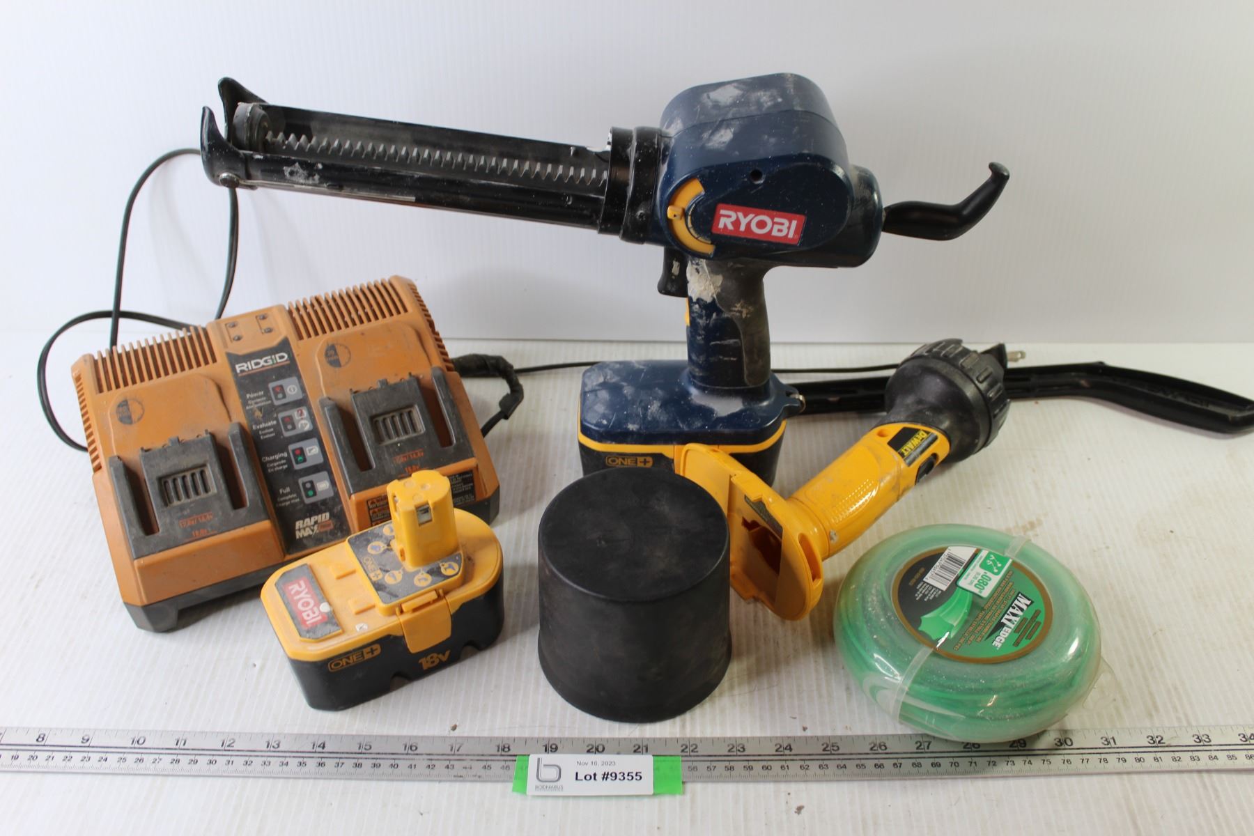 Ryobi Battery Caulking Gun - Max Edge Weed Wacker Line - DeWalt Flashlight (no battery) - Table Saw Assist Stick - Ridged Battery Charger