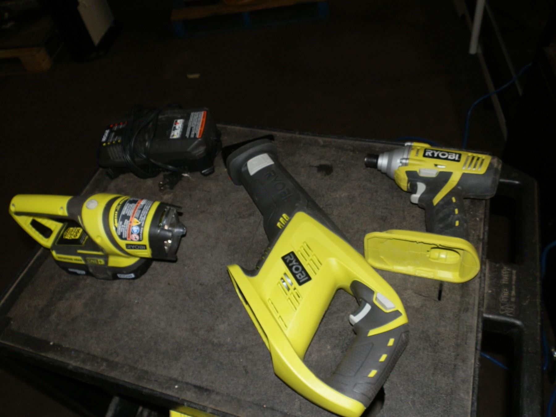 you get a flashlight, sawzall and a impact drill, comes with 1 battery and 1 charger, all in good working condition...used