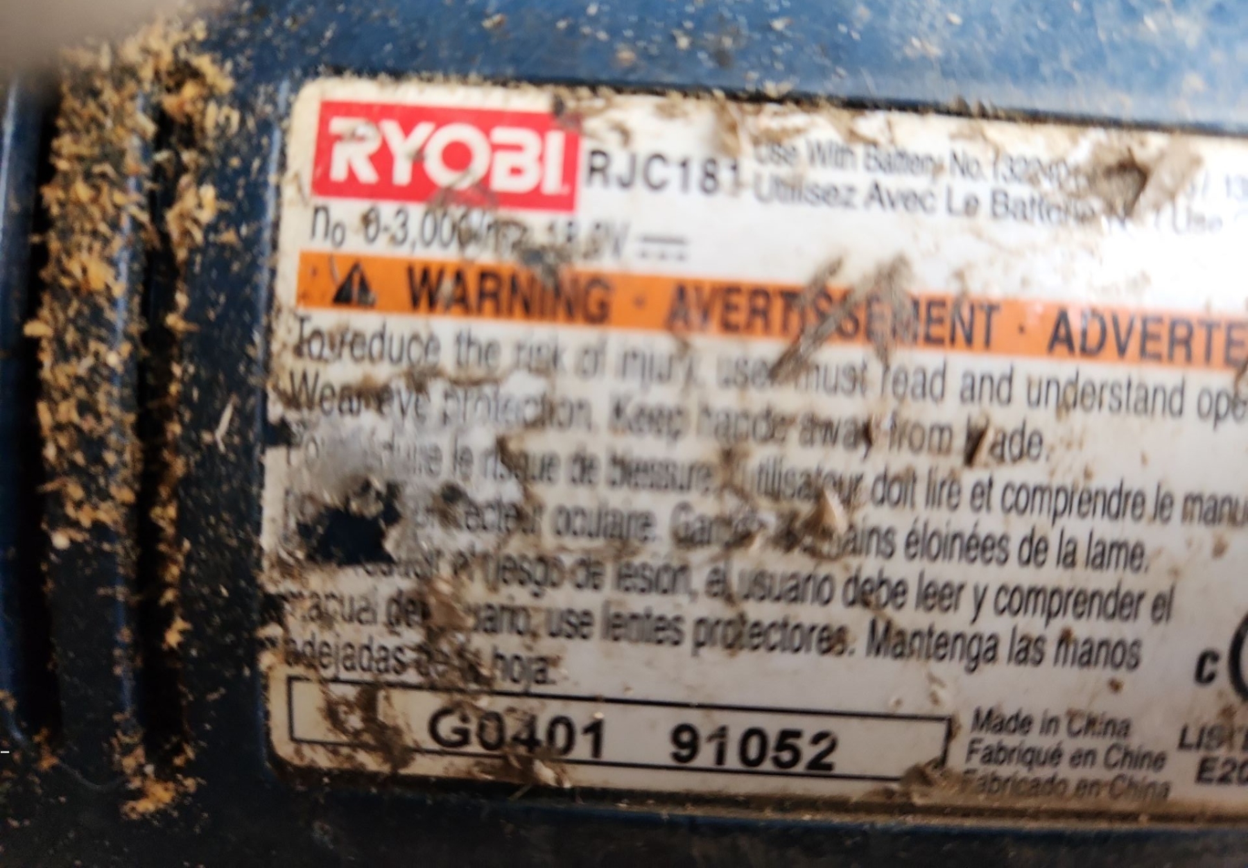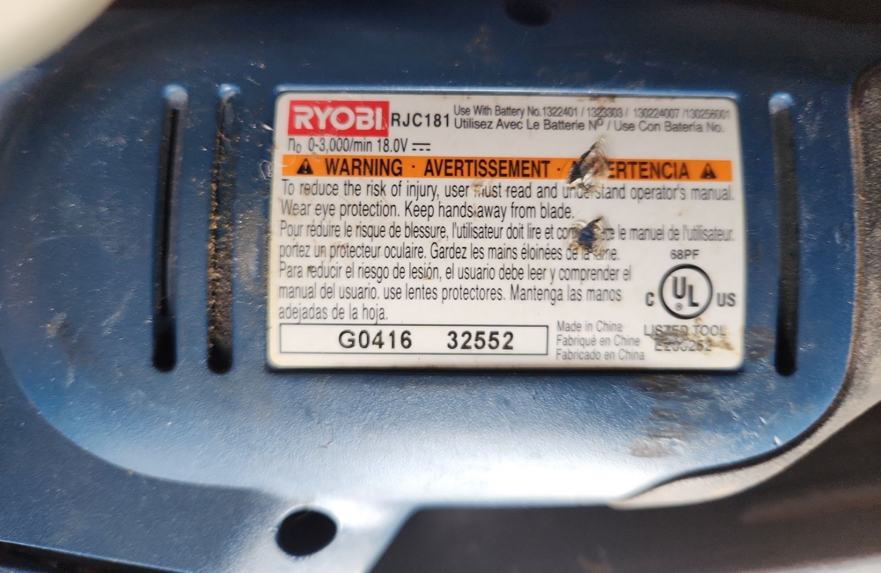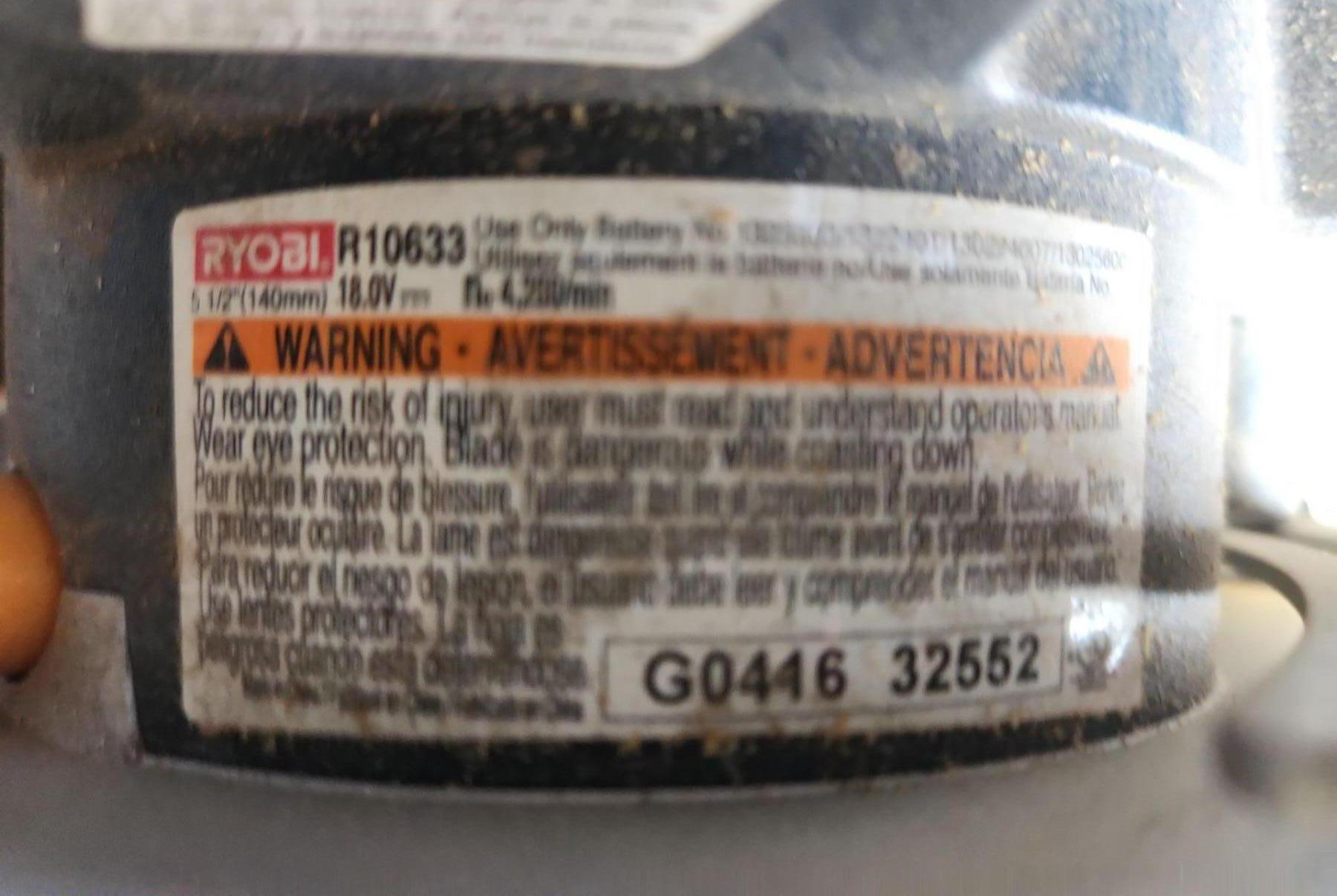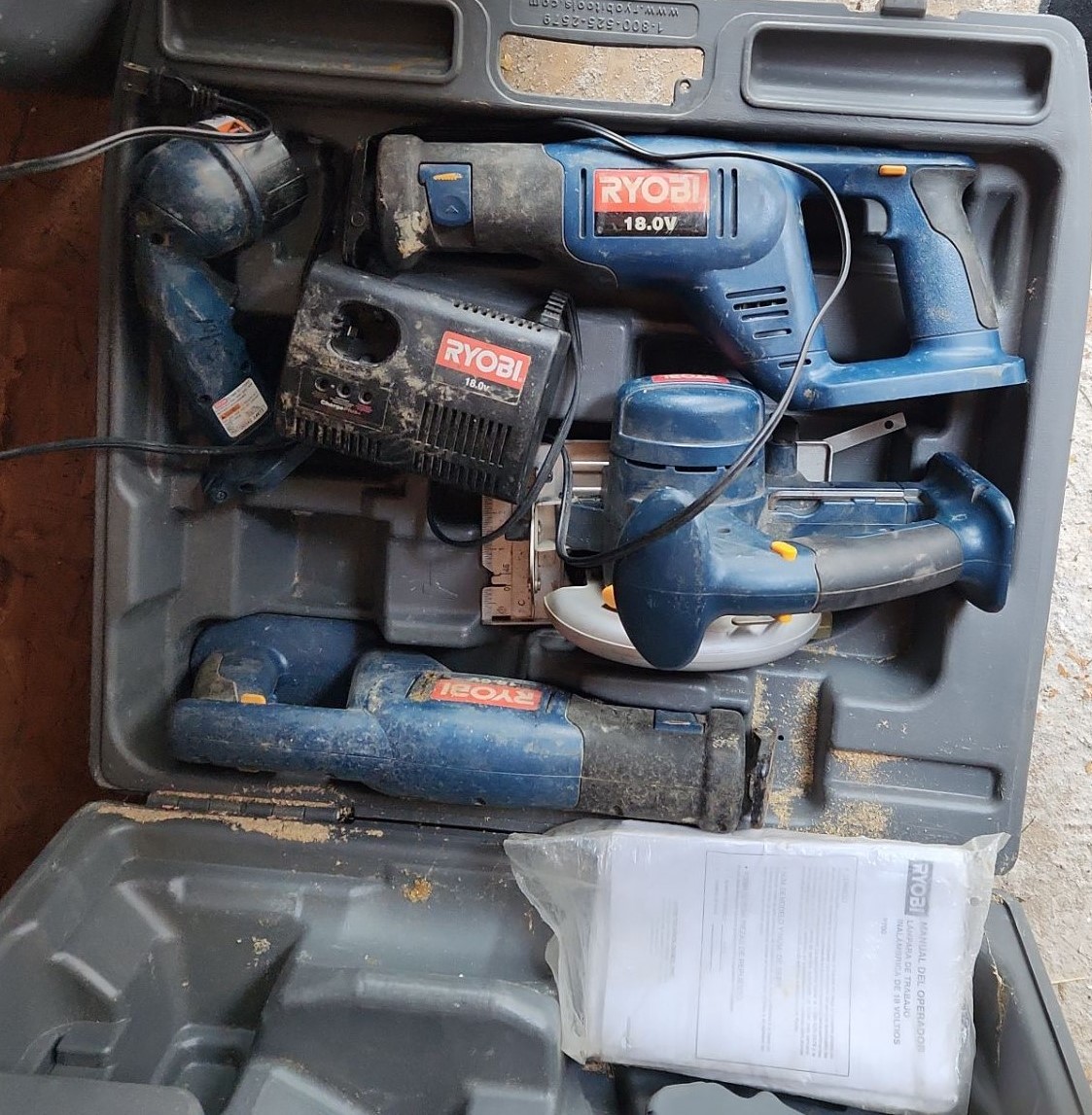Ryobi Toolkit Includes Models: Circular Saw R10633, Reciprocating Saw RJC181, Flashlight PL1800, Includes Charger, Battery Pack Missing