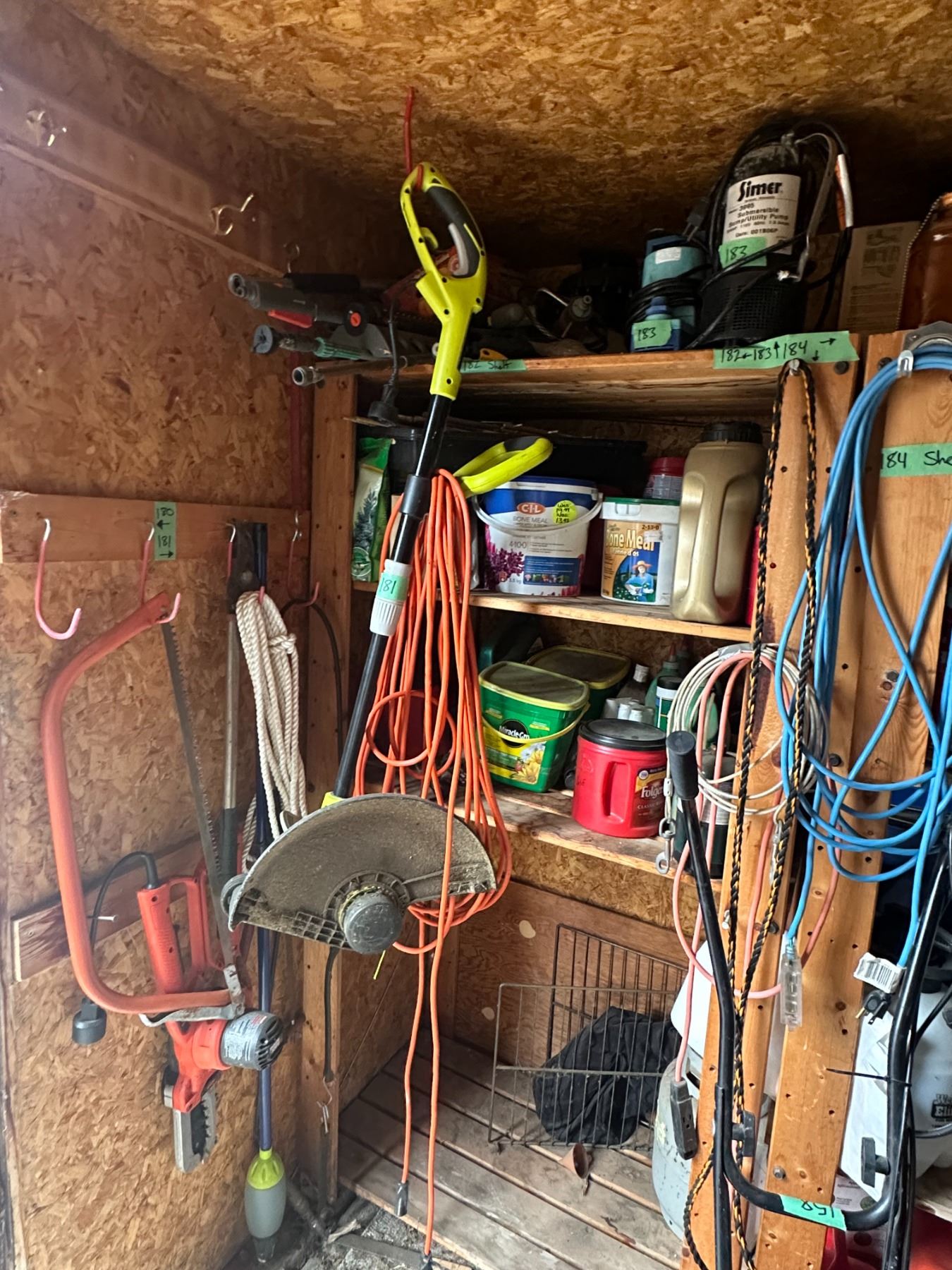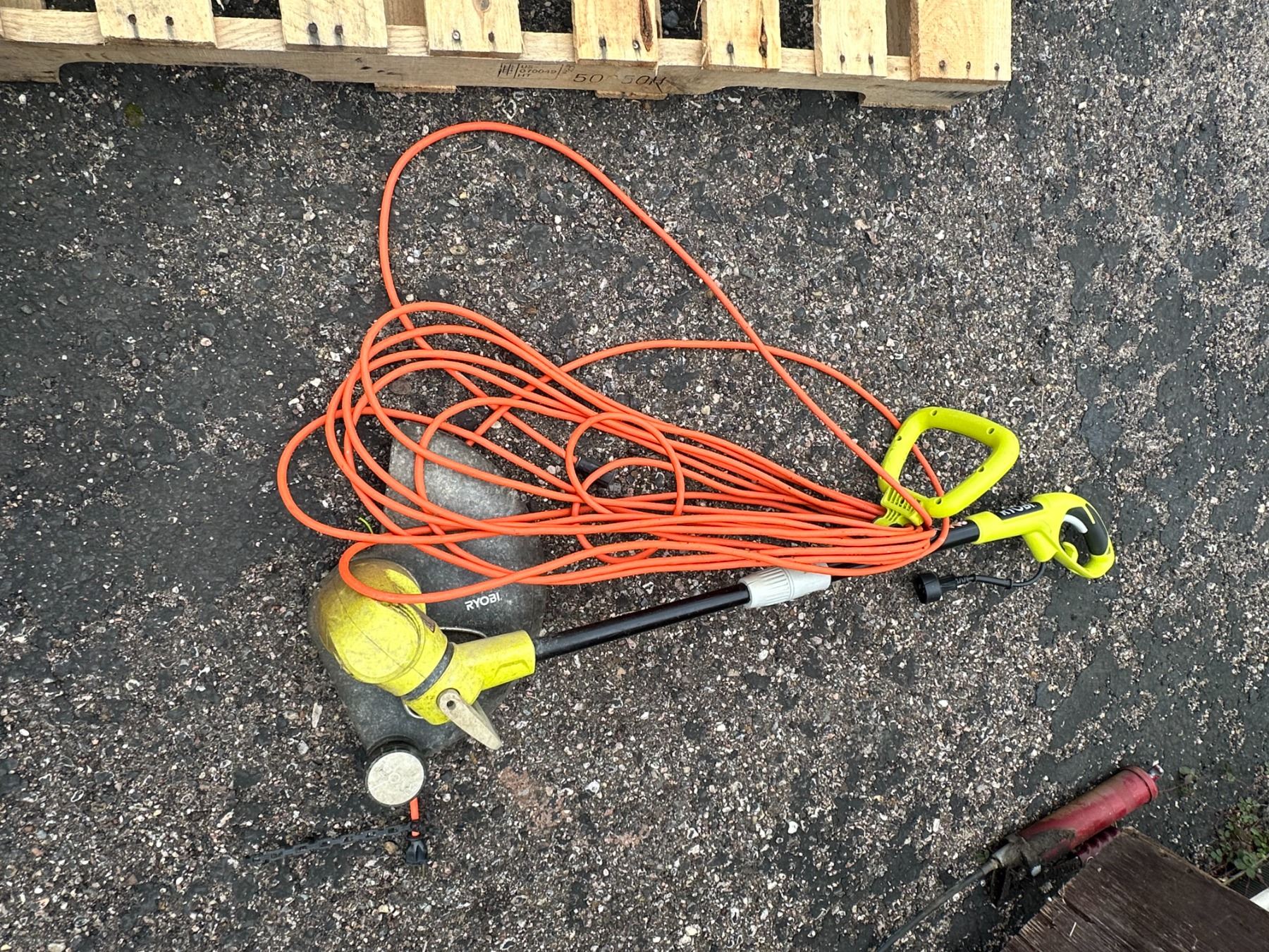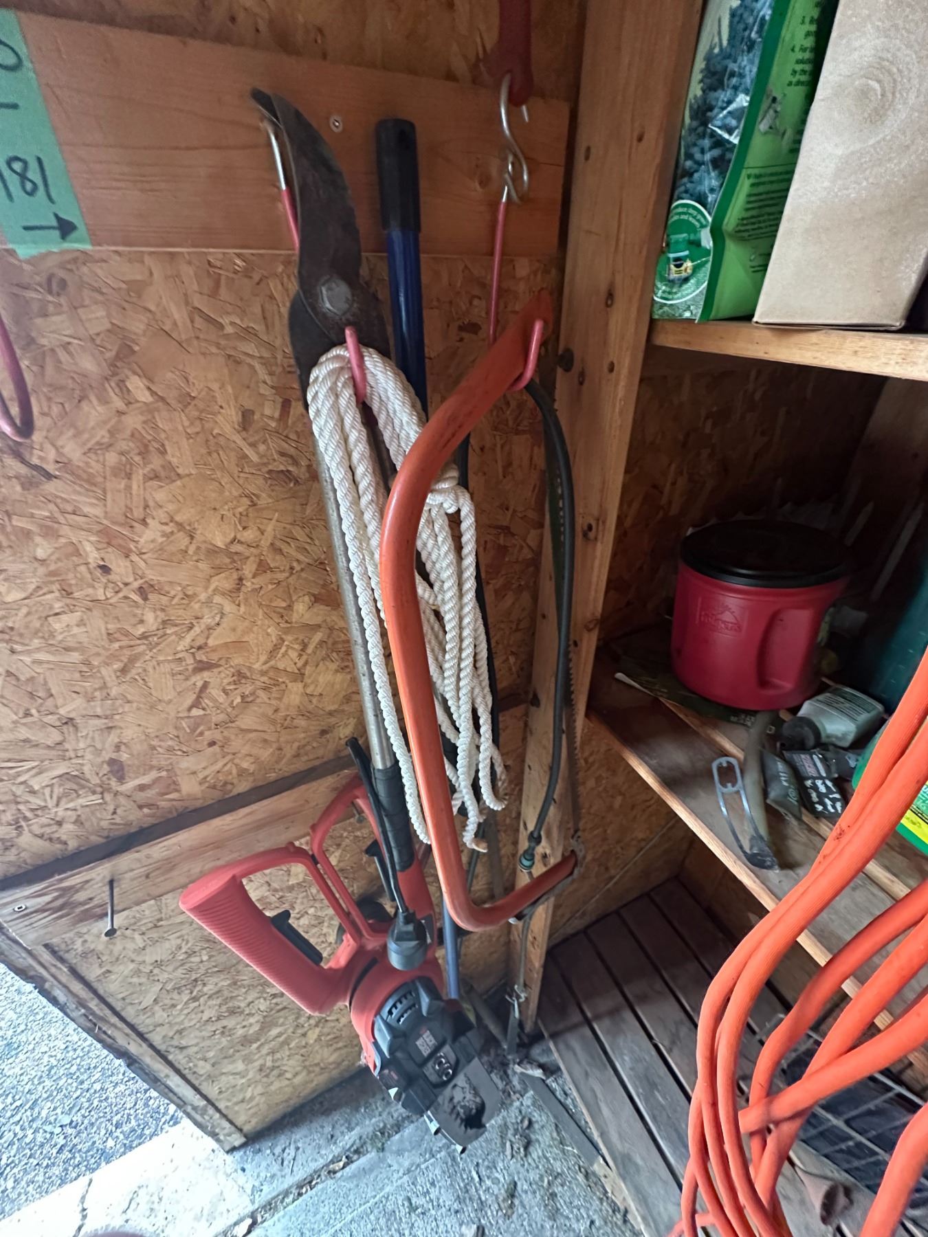 Ryobi Trimmer + Items Hanging On Wall to the Left of it