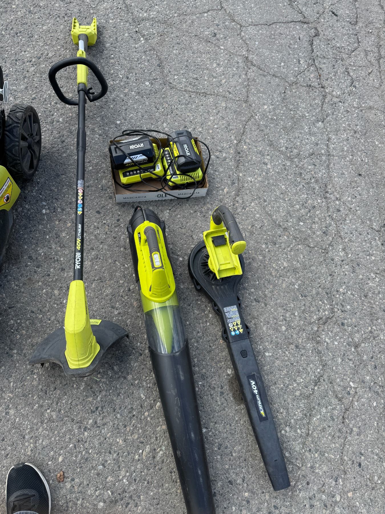 Ryobi tools with batteries and chargers