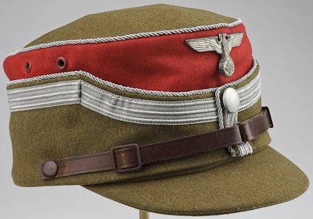 Complete late model (ca. 1942) S.A. gruppenfuhrer's uniform, complete with tunic, shirt, trousers, collarless shirt, button-on collar, necktie, and (enlisted man's) belt and buckle. The tunic, near faultless, bears a Feldherrnhalle ("Field Marshals' Hall) cuff title, arm band with RZM tag tacked to the tunic, with appropriate collar tabs and red-trimmed epaulette (also with RZM label). Lining bears a few stains, otherwise the tunic is fine with no evidence of any exterior stains, mothing or any other damage. The wool trousers bear a button fly and hook and catch closure, with a tightening strap at the rear and suspender buttons. They bear the appropriate red piping, which alone bears a few tiny moth nips. The shirt and collar bear all original buttons, although the shirt bears a very small eroded hole well below the chest area and a stain on the back of the neck. An RZM tag is present, loose, and we have placed it in the pocket of the tunic. An inappropriate SS FM cufflink is attached to one sleeve. Brown necktie with RZM cloth tag is also present. A slightly-used S.A. belt, buckle and shoulder strap are present, albeit one issued to a man of lower rank. Finally, the officer's kepi is present, brown wool with red side band and silver bullion piping and trim, leather chin strap present and completely intact. The interior of the hat is excellent, with the sweatband and red/brown lining completely intact. Diamond-shaped cello present and fully sewn, although no maker's label is present. Overall a rare complete uniform in superb condition. On Friday morning, 9 November 1923, the Feldherrnhalle was the scene of a confrontation between the Bavarian State Police and an illegally organized march by the followers of Adolf Hitler. When ordered to stop, the marchers continued; the State Police felt threatened and opened fire. Four policemen and sixteen marchers were killed and a number were wounded, including Hermann Göring. Hitler was jailed for his participation and sent to Landsberg Prison, where he wrote Mein Kampf. The officer who wore this uniform possibly headed the honor guard at that site.
