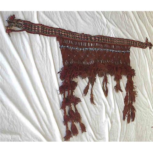 This is a semi antique kilim made horse trapping band from Turkomanistan....Band is hand woven kilim with woven net inc. very bushy wool tassels, longer tassels in corners....decorated with beads....Motifs on the kilim band done using warp replacement tapestry.....Size:- Band is 54" x 2.5" wide, end strings 5", woven net is 32" x 10" deep inc tassels---corner tassels are 16" longer than the net itself, many wool bushy tassels in Turkoman madder red....cc 1960's, in exc. cond, washed, clean... intact, untouched, original condition with ends intact $20, to USA $25, International $30 not inc. insurance which is extra...Combined shipping available world wide ....Any Q or more photos please email us.....Thanks for looking at our listings....