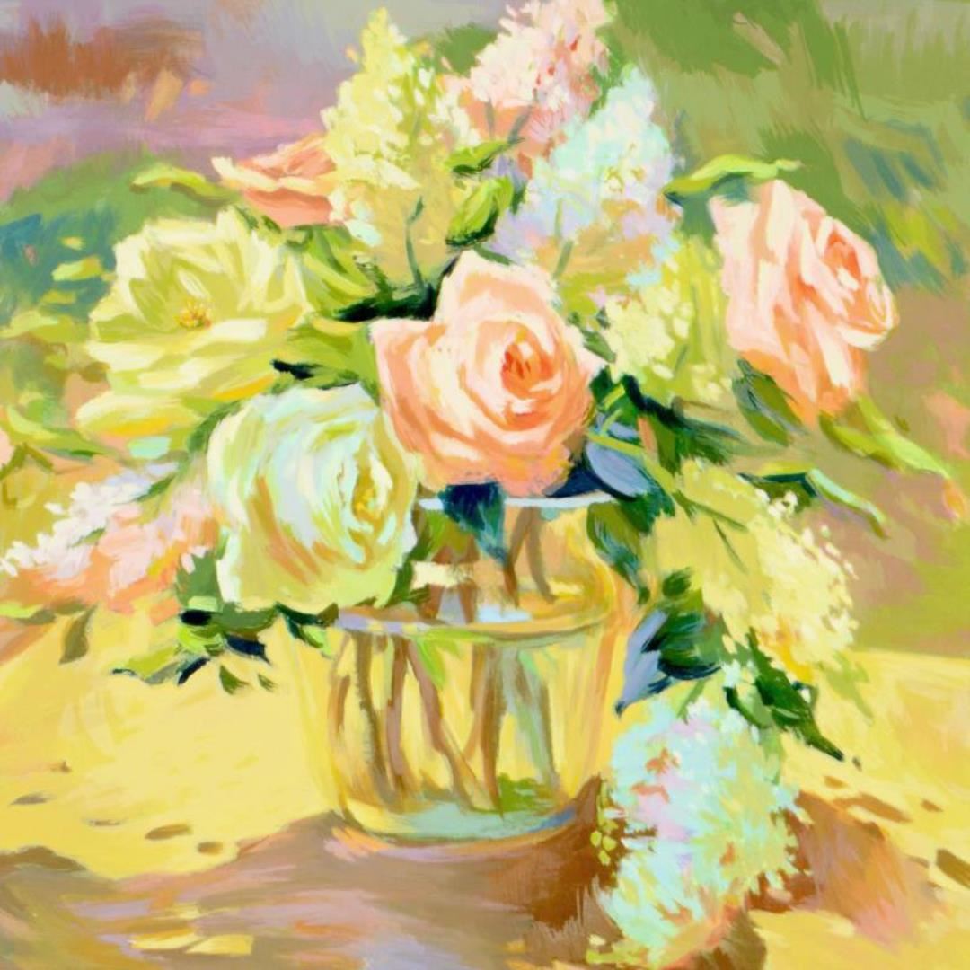 "Summer Roses" is a limited edition giclee on paper by S. Burkett Kaiser, numbered and hand signed by the artist. Includes Letter of Authenticity. Measures approx. 20" x 17" (border), 16" x 13" (image).