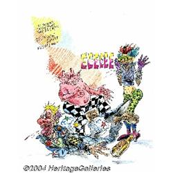 <B>S. Clay Wilson - Checkered Demon Pin-Up Original Art (1979).</B></I> In 1979, Punk Rock ruled the world -- at least a small corner of it (one littered with safety pins and leather jackets). That gross-out king of Underground Comix, S. Clay Wilson, lets loose his feelings for the whole punk thing through his <B>Zap Comix</B></I> creation, the Checkered Demon. Kick 'em good! Drawn in ink, watercolor, and colored pencil on an 11" x 13.5" sheet of sketchbook paper, it's in Excellent condition. <BR><BR><B>Important notice:</B> Heritage usually auctions material at the rate of 200-250 lots per hour. On some occasions eBay Live bid software or the Internet may not be able to keep up with the pace of the auction. We recommend placing a realistic absentee bid now as insurance to avoid disappointment. Occasionally the auctioneer may eliminate or reject an eBay Live bid, and the auctioneer may also reopen a lot after the close of the eBay live bidding (usually because we missed an audience bid), and may reject your bid even if it shows you as the winning bidder. By bidding via eBay Live, you agree that Heritage may award the lot to another bidder at its sole discretion under the circumstances described above or any other reasonable circumstances. Since eBay bids are not shown to us until we open the lot on the floor, we treat those bids just like floor bids. In most cases the floor responds before the eBay bid is presented to us, due to Internet lag time, so for consistency we have made it a policy that floor bids are always considered first over tie eBay live bids. Also please note that all Heritage lots purchased through eBay Live carry a 20% Buyer's Premium. Please make sure you read the Terms and Conditions before you bid.