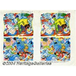 S. Clay Wilson - Printer's Proof for Covers to S. Clay Wilson Portfolio Comix (Print Mint, 1970). This unusual and possibly unique item is in fact a "printer's proof" in 3 colors (magenta, cyan, and yellow) for two sets of front and back covers to S. Clay Wilson Portfolio Comix, a comic-sized collection of one-page crazed illustrations by the original Zap madman. Wilson is notorious for not giving out autographs, and this piece has four of 'em, including a rather rude salute to the Bucktown Pub in Chicago, home of the Underground Hall of Fame Awards. Don't hold your breath waiting for another one of these to come along -- it may well be a long wait! The piece measures a whopping 23" x 17.5", and is in excellent condition. Important notice: Heritage usually auctions material at the rate of 200-250 lots per hour. On some occasions eBay Live bid software or the Internet may not be able to keep up with the pace of the auction. We recommend placing a realistic absentee bid now as insurance to avoid disappointment. Occasionally the auctioneer may eliminate or reject an eBay Live bid, and the auctioneer may also reopen a lot after the close of the eBay live bidding (usually because we missed an audience bid), and may reject your bid even if it shows you as the winning bidder. By bidding via eBay Live, you agree that Heritage may award the lot to another bidder at its sole discretion under the circumstances described above or any other reasonable circumstances. Since eBay bids are not shown to us until we open the lot on the floor, we treat those bids just like floor bids. In most cases the floor responds before the eBay bid is presented to us, due to Internet lag time, so for consistency we have made it a policy that floor bids are always considered first over tie eBay live bids. Also please note that all Heritage lots purchased through eBay Live carry a 20% Buyer's Premium. Please make sure you read the Terms and Conditions before you bid.