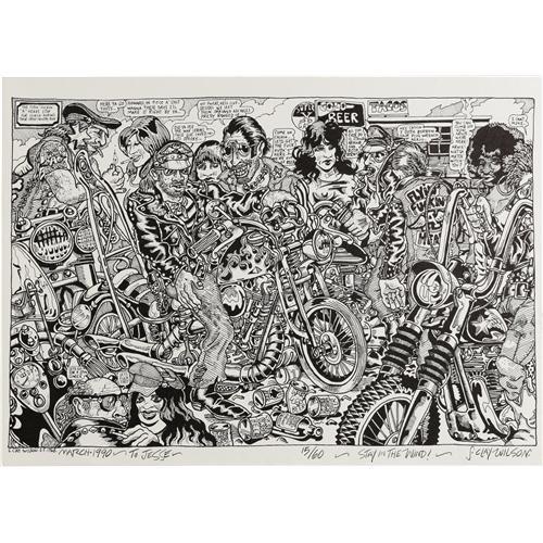 "<B>S. Clay Wilson - ""The Flyin' F*****' 'A' Heads"" Limited Edition Print #15/60 (Apex Novelties, 1990).</B></I> Printed in black on white textured paper, this limited print is titled, ""The Flyin' F*****' 'A' Heads stop for lunch during their cross-country run."" Measures 28.5"" x 20.25"". In Very Good condition. Signed and inscribed by S. Clay Wilson along the bottom. <I>From the collection of Jesse Edwards/JES Archives.</B></I><BR><BR><b>Shipping:</b> Large Flat (<a target=""_blank"" href=""http://www.heritageauctions.com/common/shipping.php"">view shipping information</a>) "