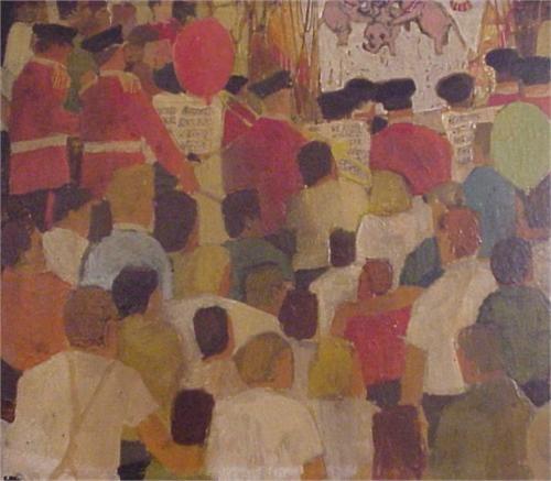 S. Daijozo (20th Century) CIRCUS AUDIENCE, gouache