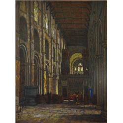 S. Dennant Moss, pastel of St Albans Abbey interior