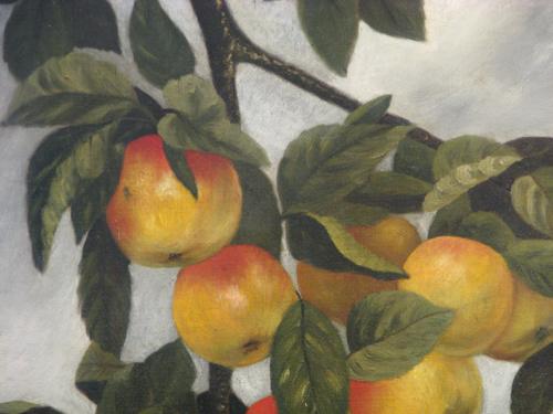 S.E. Hahn Apples on Bough Still Life ptg