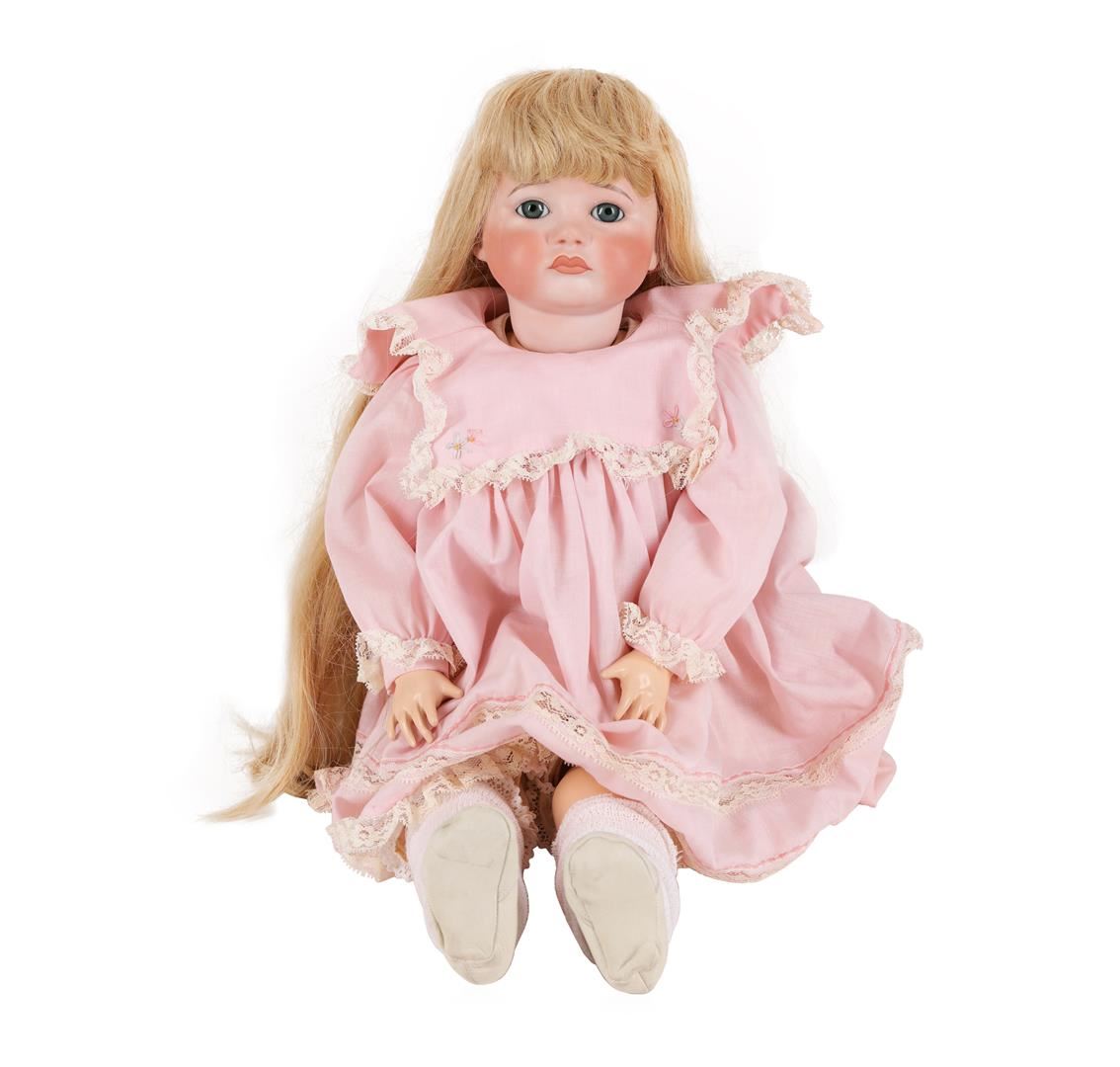 One original S.F.B.J. doll crafted in Paris, France. The doll is model #252 with the original clothing, measuring approximately twenty-four inches tall and in vintage condition.