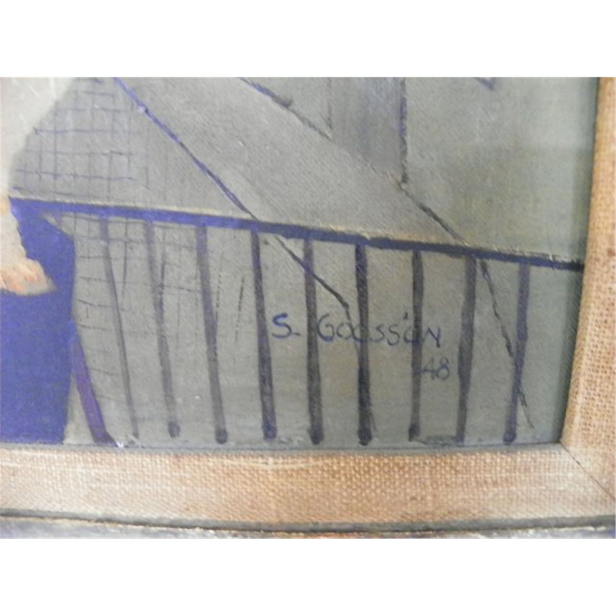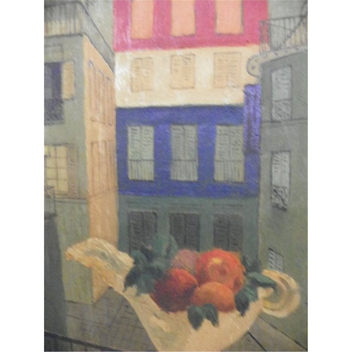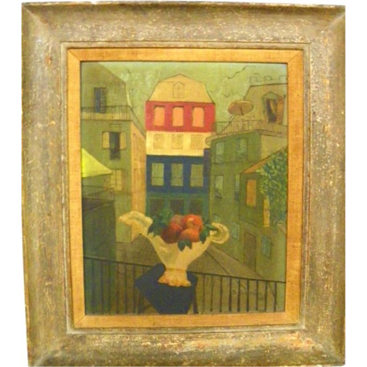 S. Goossin Fruit Still Life in City Scene, oil on board,15 3/4" x 11 1/2", signed S. Goossin, dated '48 lower left framed 21 1/2" x 17 1/2" Please read our terms of sale.