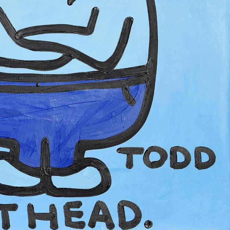 We acquired this piece as part of a larger collection. We do not approve of its inappropriate content. "S*** Head" is an original acrylic painting on canvas by Todd Goldman, hand signed by the artist. Includes Letter of Authenticity. Measures approx. 36" x 36" (image). Due to the way this piece was stored there may be minor wear or signs of age (such as wear on the corners) but the piece is in overall good condition.