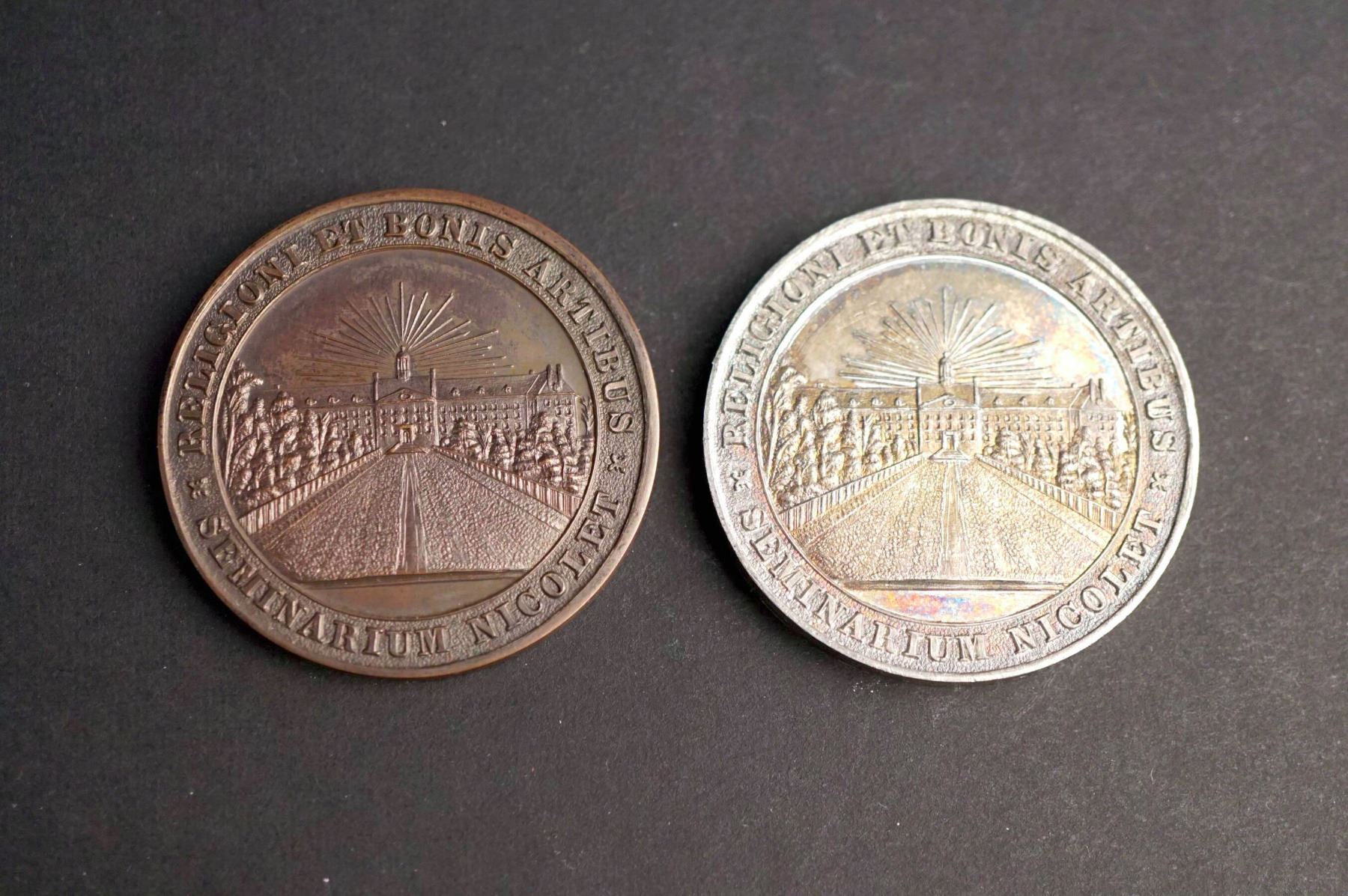 SÉMINAIRE DE NICOLET - Lot of two medals Common dies, different metals - B