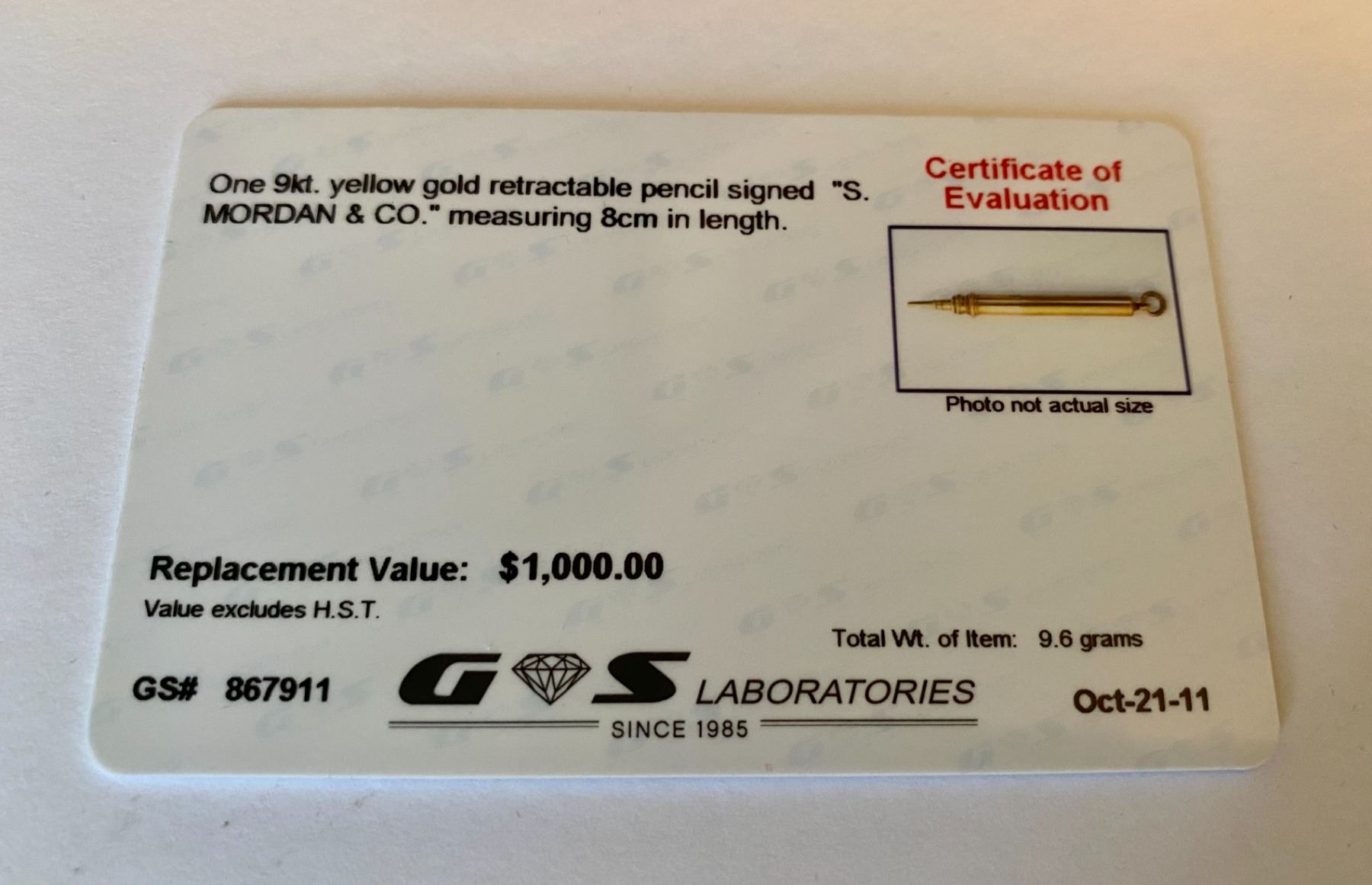 S. MORDAN RETRACTABLE PENCIL PENDANT ON GOLD CHAIN - 9 K