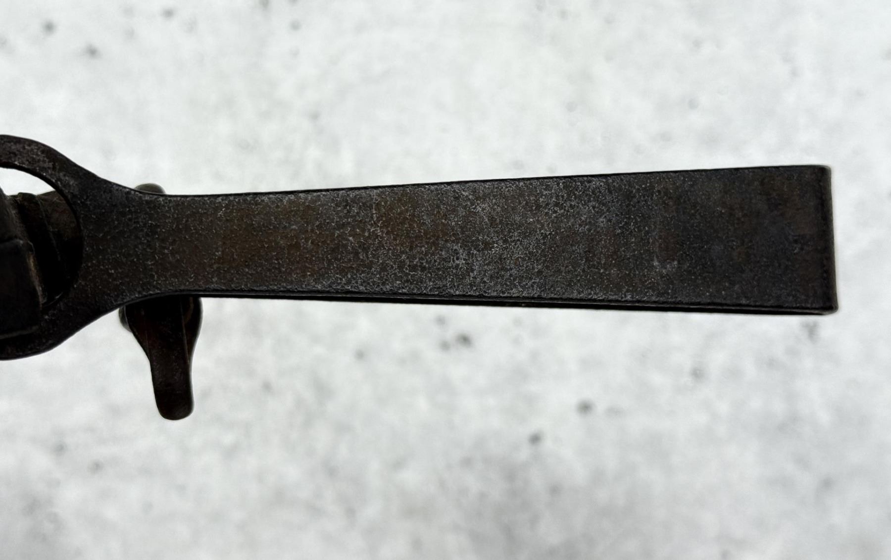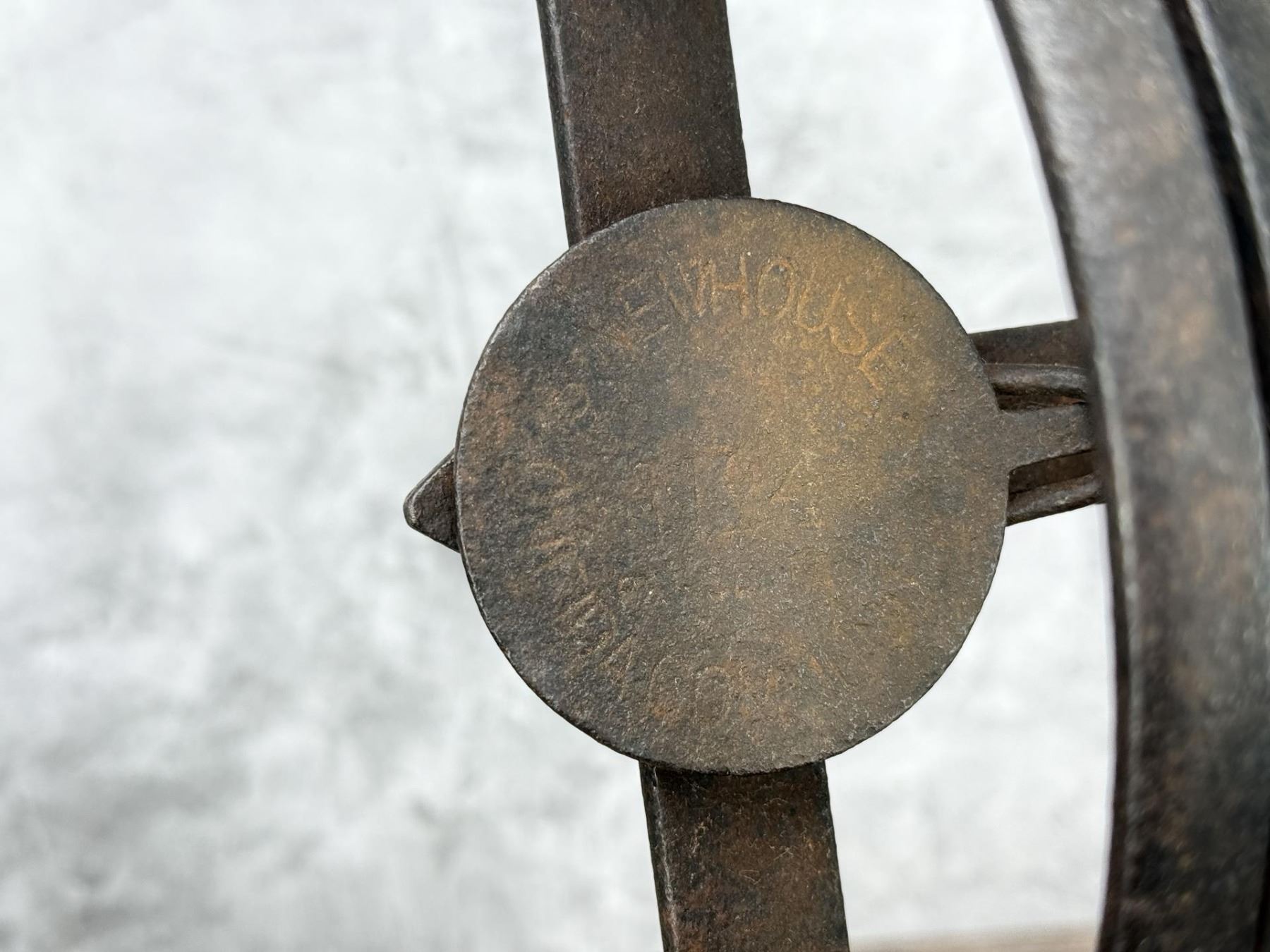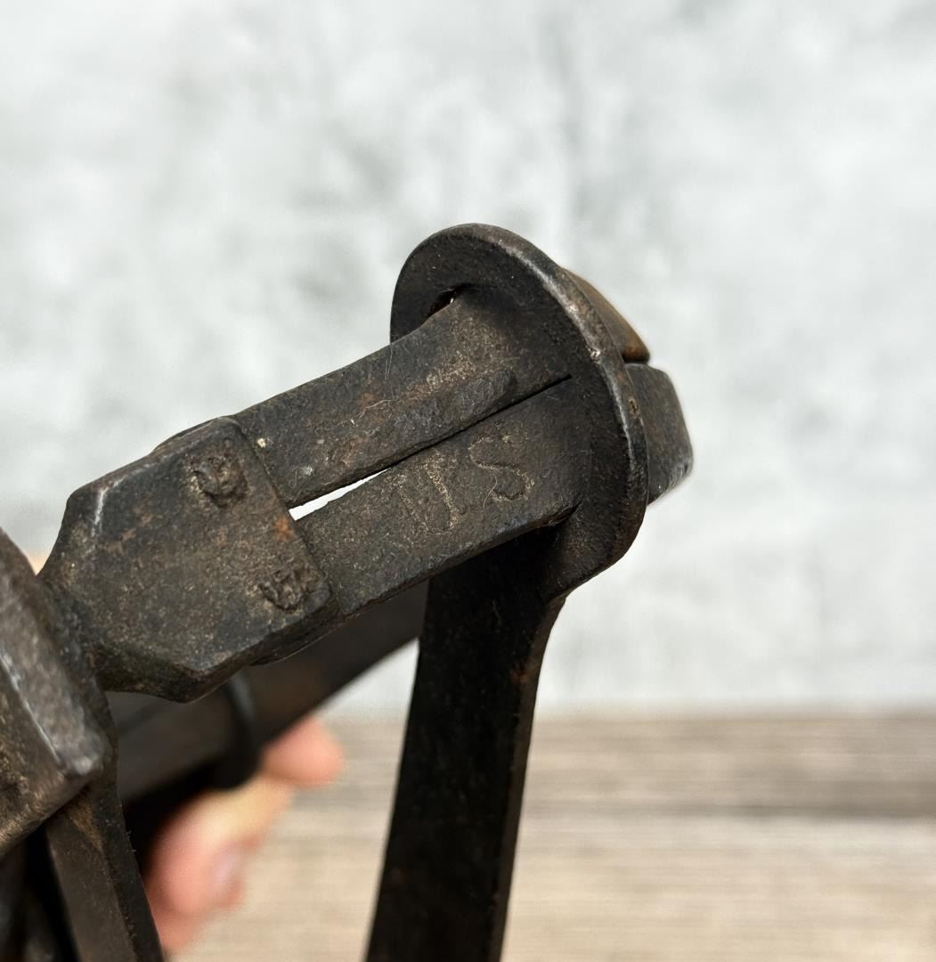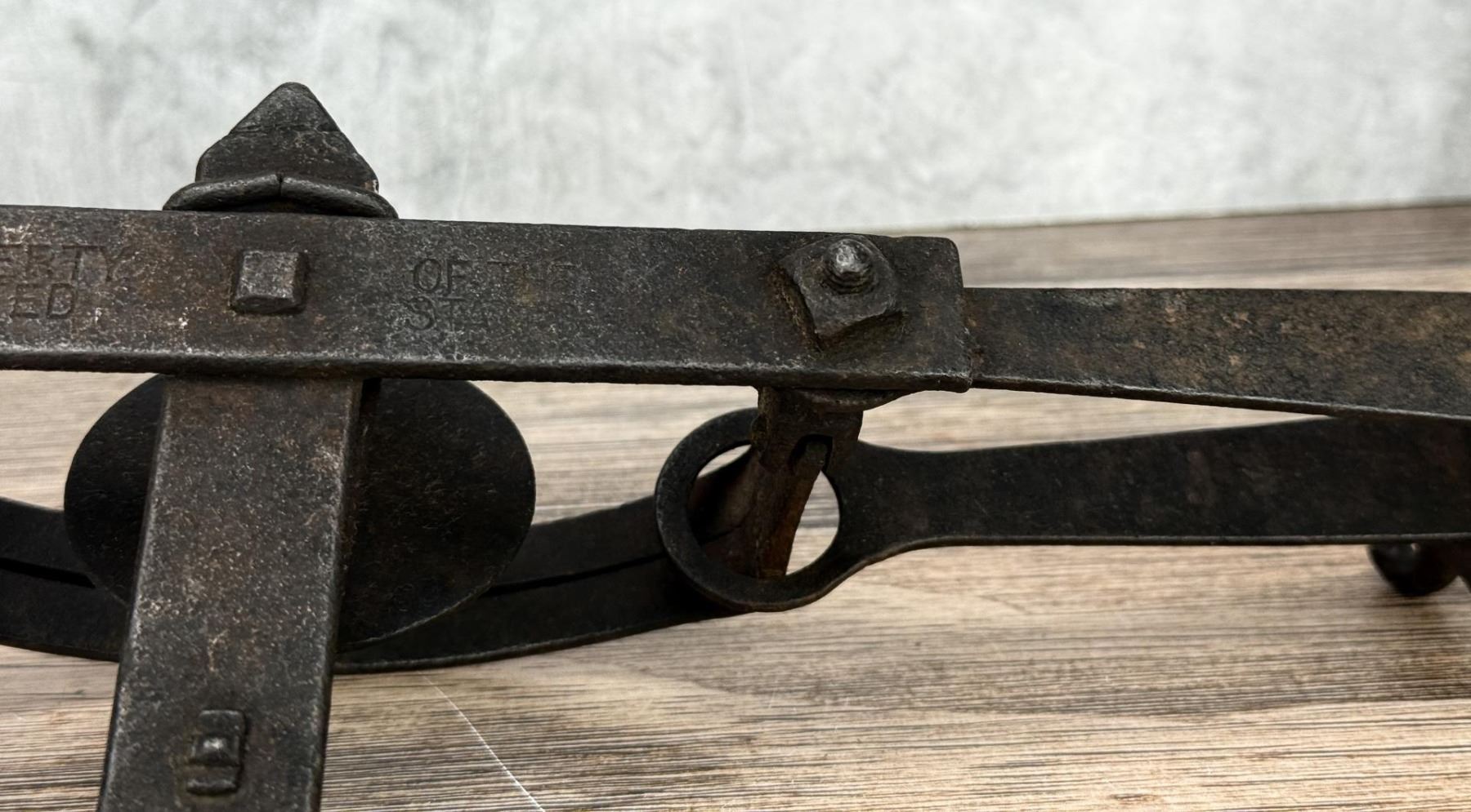 Very nice hard to find trap. Property of US Marked on base and on jaws. Chain attachment is broken.