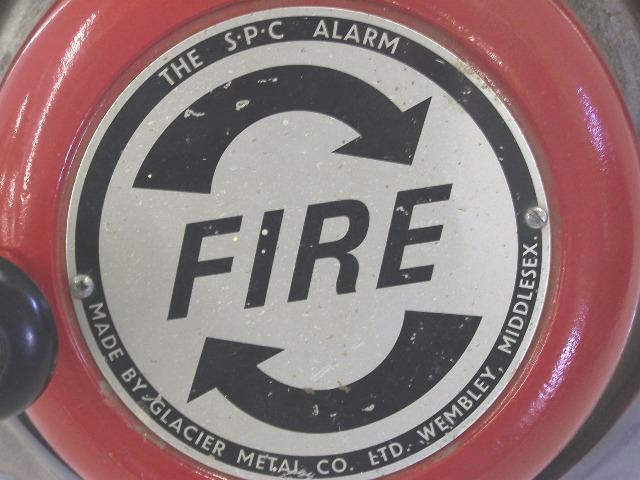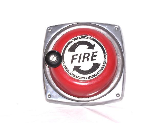 The SPC Fire Alarm. Wall mount turn bell by the Glacier Metal Co Wembley, MiddleSex. Sounded by turning handle. REGD no 895106. Approx 11" x11" in size and approx 8lbs. Condition is good.