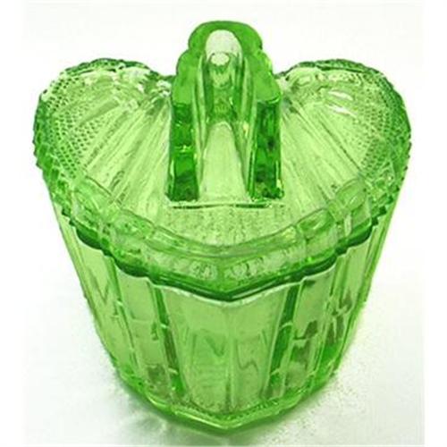 <tr><td>Title:S Reich HEARTS Art Deco Glass Green Powder Jar</td></tr>