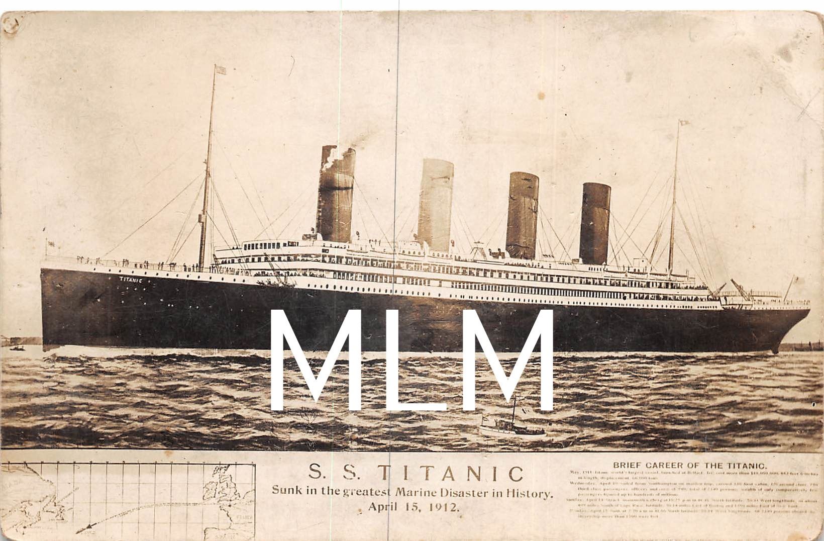 S.S. Titanic Real Photo "Sunk in the greatest Marine Disaster in History" Postcard