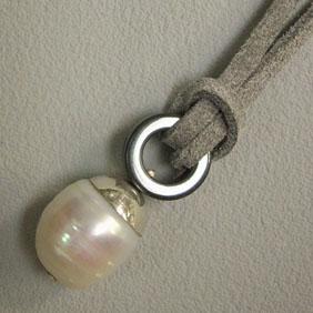 STERLING SILVER SOUTH SEA PEARL AND HEMATITE UNISEX PENDANT. THE PEARL MEASURES 13 MM APPROX BAROQUE. LENGTH OF THE PIECE: 29 MM