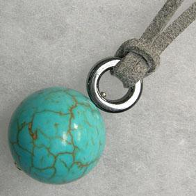 S. SILVER 20 MM STABILIZED TURQUOISE AND HEMATITE UNISEX PENDANT - 32 MM LONG