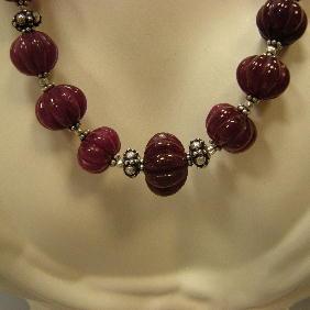 STERLING SILVER CARVED RUBY RONDELLES NECKLACE. IT WEIGHTS 396 CTS. EACH RONDELLES MEASURES BETWEEN 11 AND 14 MM. LENGTH: 16 INCHES