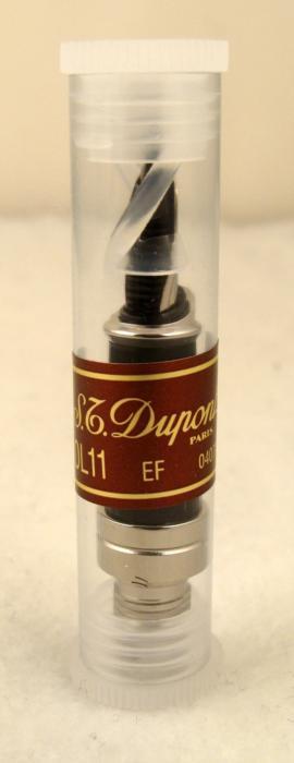 Brand: S.T. Dupont ParisModel: 040742 (EF) OL11Composition: 18K (750) White gold nib with black plastic body and silver plating on base metalOrigin: Made in GermanySize: Approx. 2 7/16 inches (6.2 cm) longCondition: Mint in the original packaging