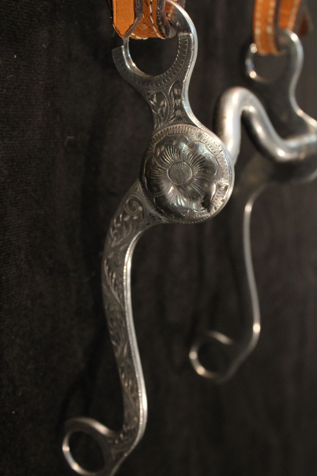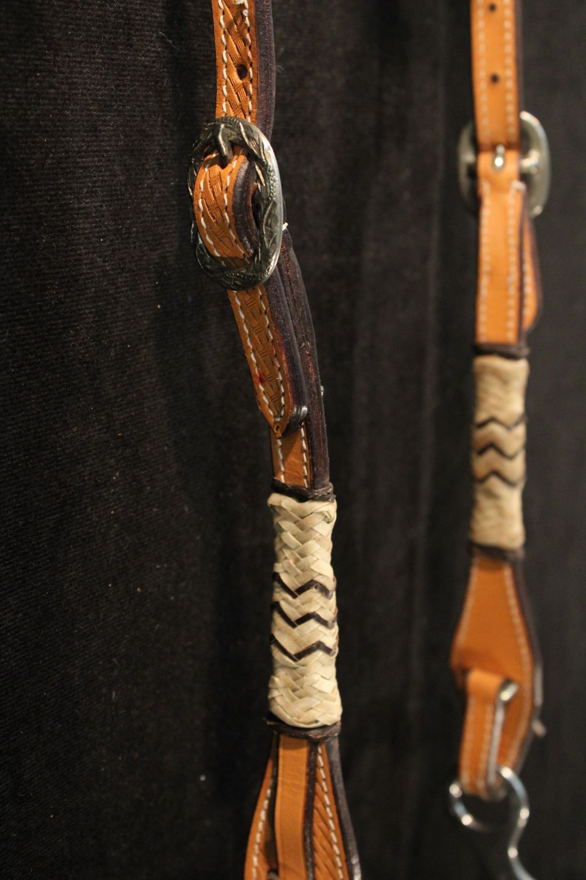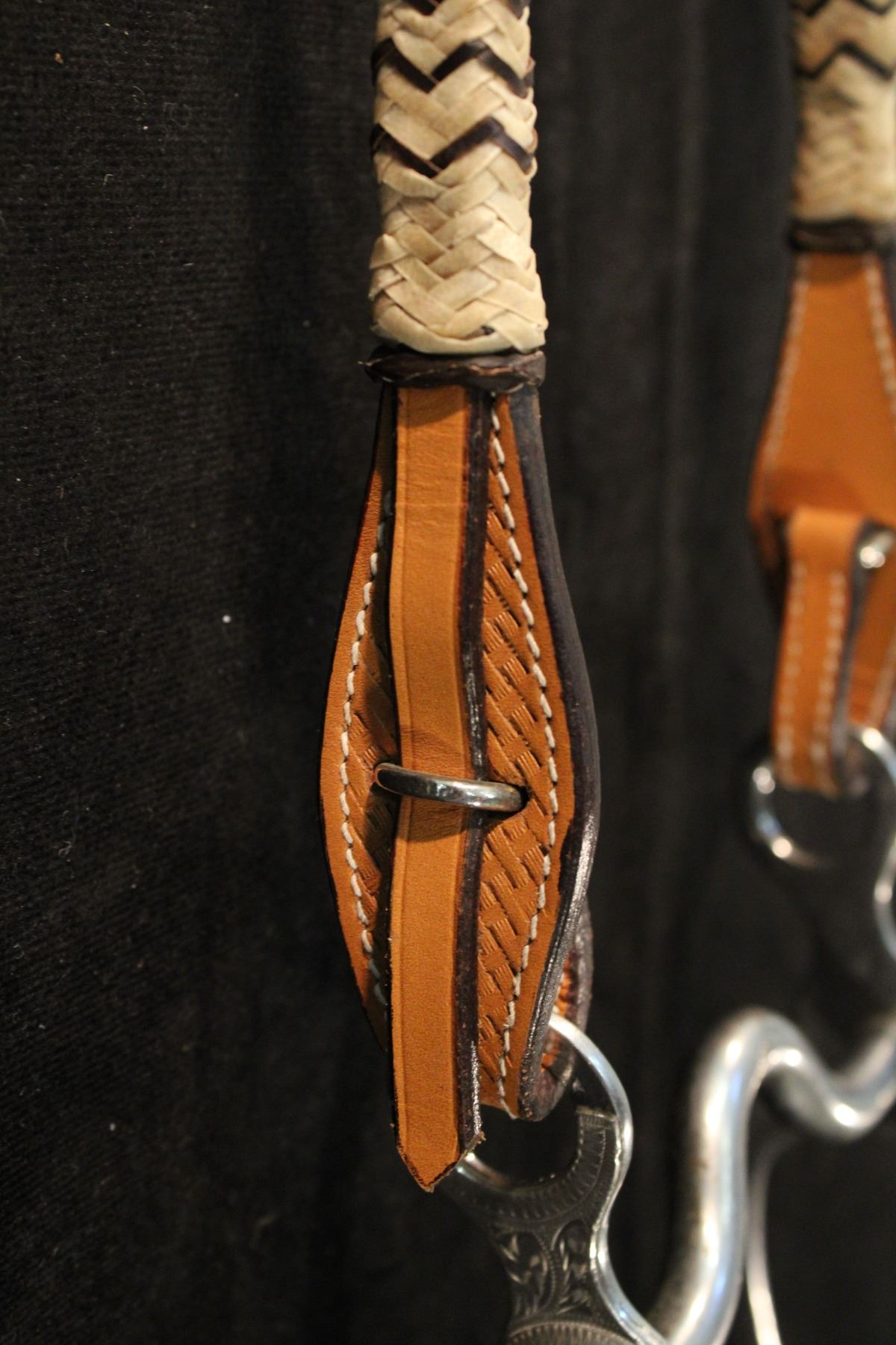Headstall marked "Cody" Rawhide & silver, low port mouth
