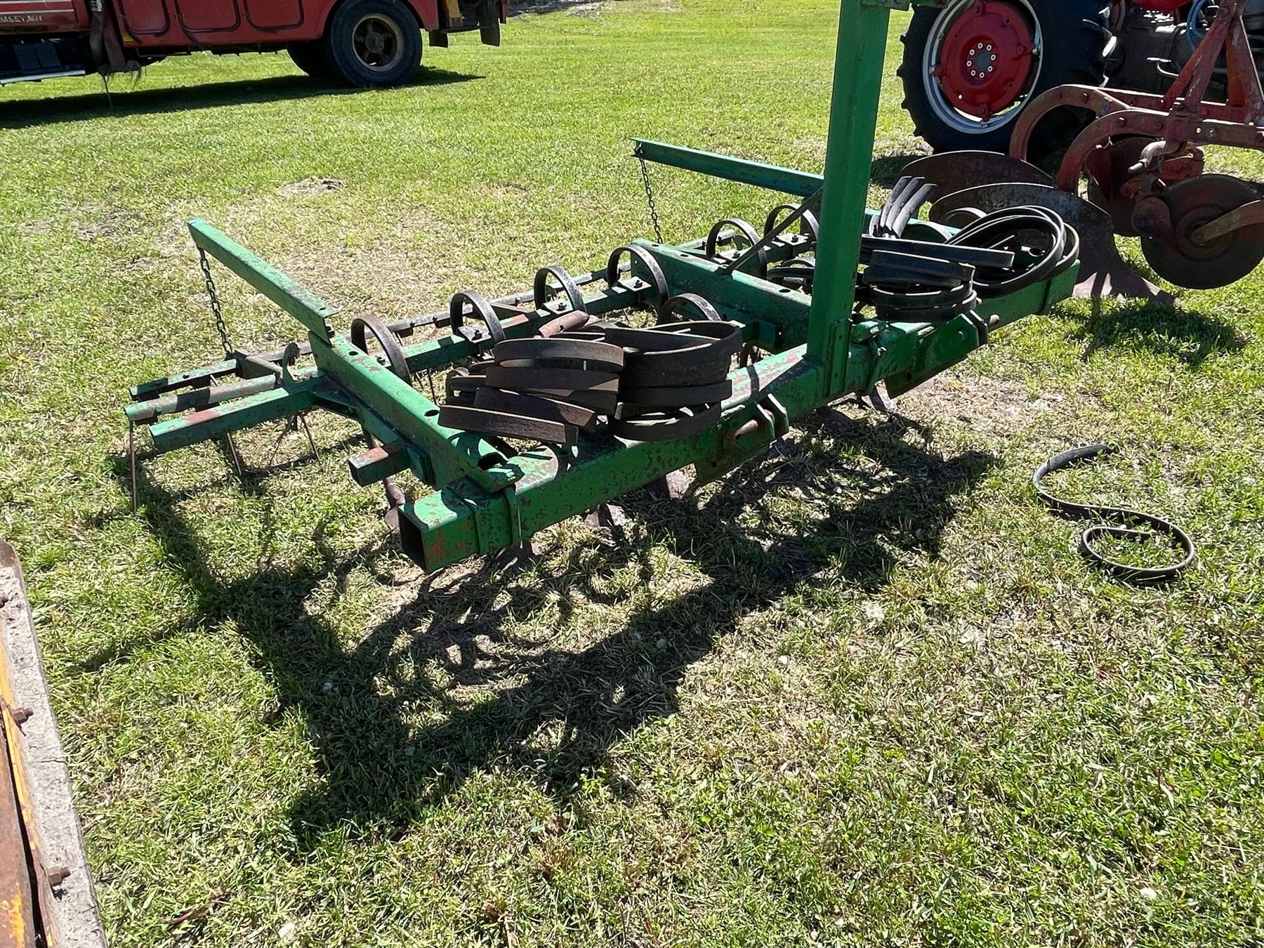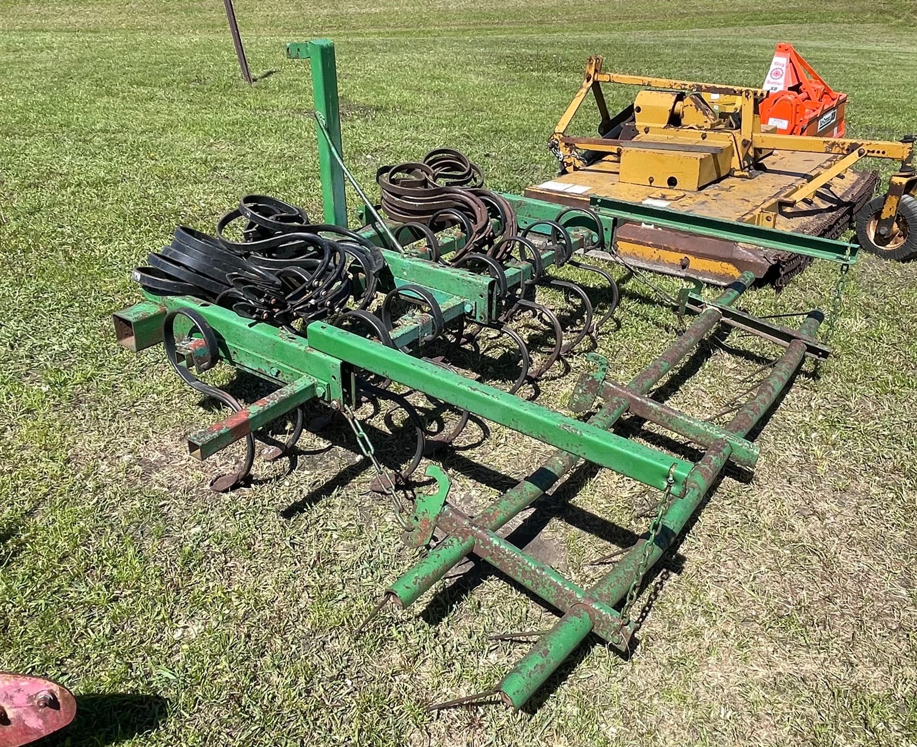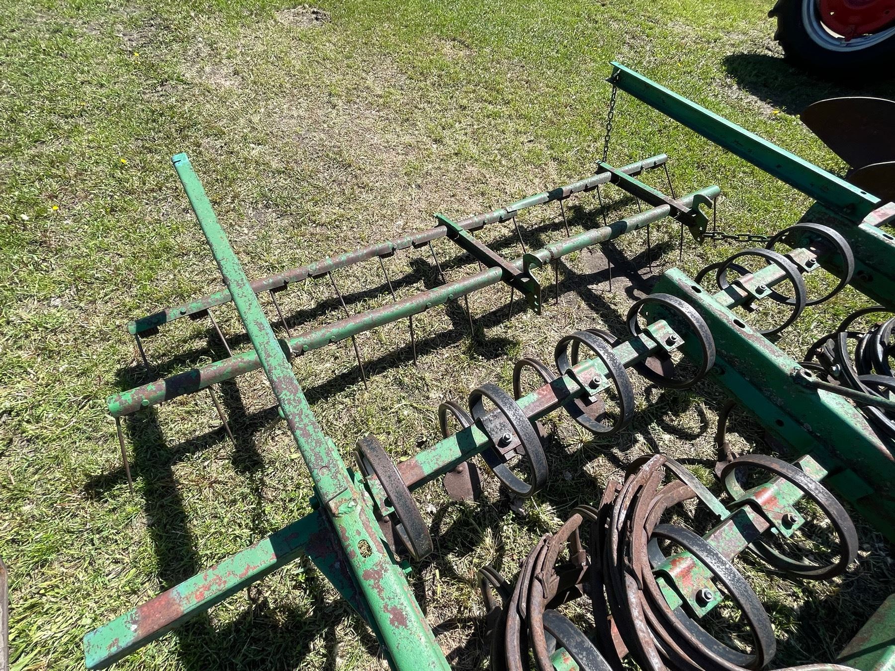 DOUBLE BAR S-TINE CULTIVATOR CONTAINING 13 ATTACHED S-TINES AND 22 EXTRA S-TINES; DOUBLE BAR HARROW; OVERALL LENGTH IS 88-INCHES