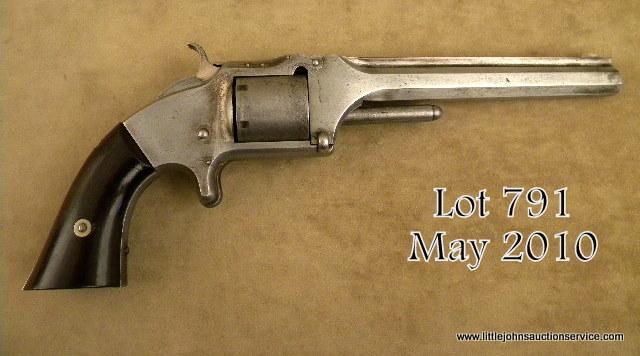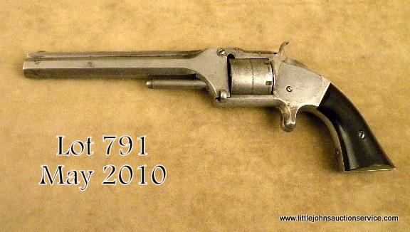 S&W #2 Army .32 cal. S.A. revolver #22525 in C.W. Range. Faint traces of Silver or nickel that has been cleaned to grey. Grips refinished nicely. Good metal, good markings, excellent marks, good action. Est. $350-700