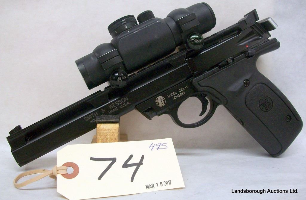 RESTRICTED, SEMI AUTO, 22LR, 178MM BARREL, SN UDH3382. RUBBER GRIPS VERY GOOD, BLUING HAS SOME MARKS, BORE VERY GOOD. COMES WITH BUSHNELL RED DOT SCOPE AND TWO MAGS.