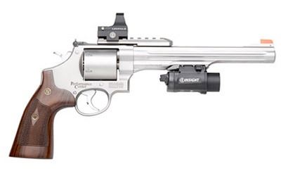 Smith & Wesson, Model 629 Performance Center, Double Action, Large Revolver, 44 Mag, 8.375" Fluted Barrel, Steel Frame, Stainless Finish, Wood Grip, Adjustable Sights, 6Rd, Fired Case