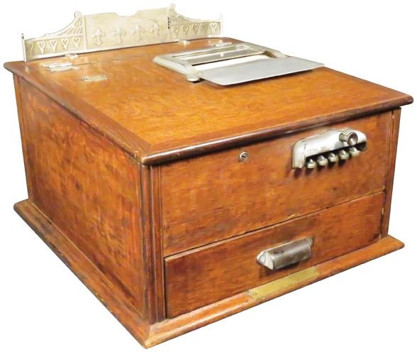 S.W. Clapp & Co. Sales Generator Oak Cash Reciept Register. Made by the Time American Cash Register Co. Boston, for Hough's Security. Good original condition. 18 X 13 X 9 1/2 inches.