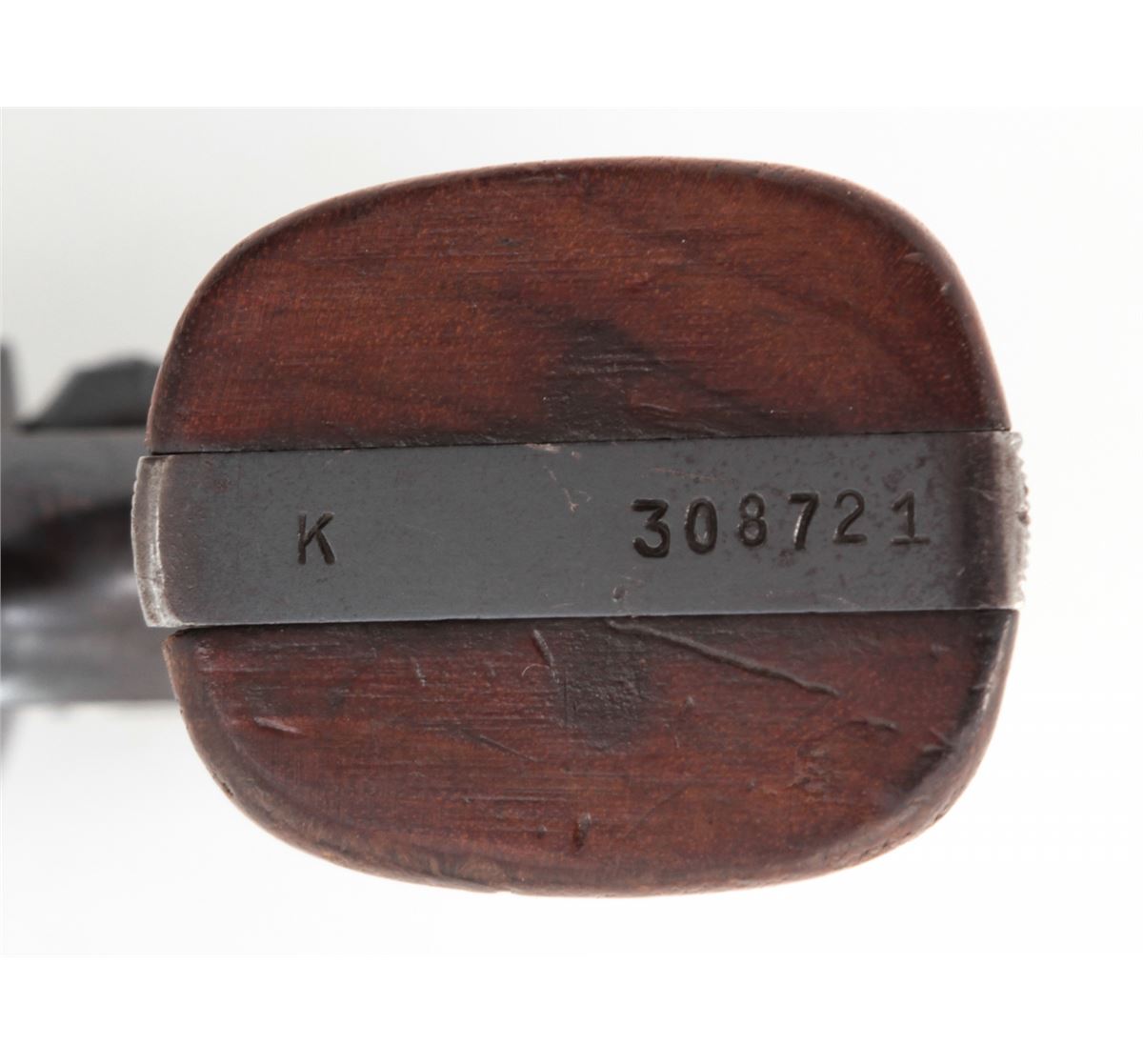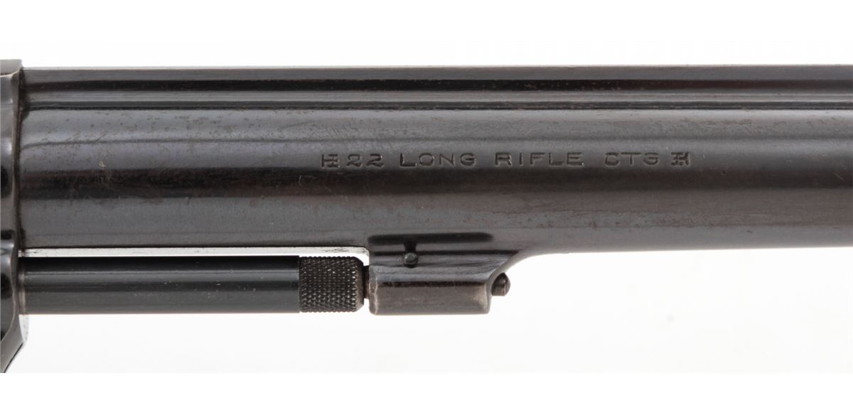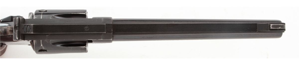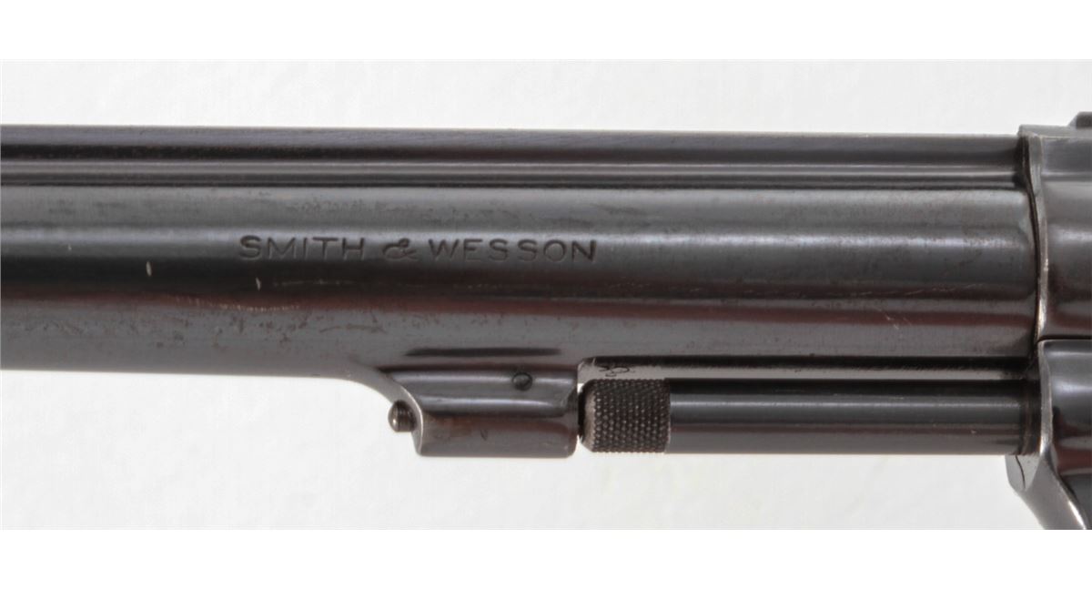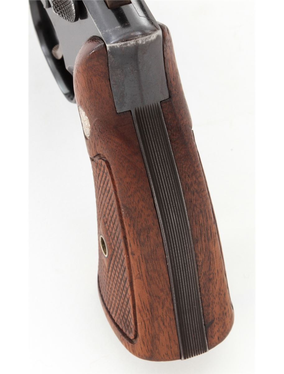 Smith & Wesson K-22 Double Action Revolver, #308721, .22 LR cal., 6'' barrel, blue finish, factory checkered large diamond walnut grips with S&W medallions. Condition is fine retaining approx. 92% lightly thinning blue. Grips show mild flattening. Action is good, bore is bright. Est.: $350-$500. (C&R)